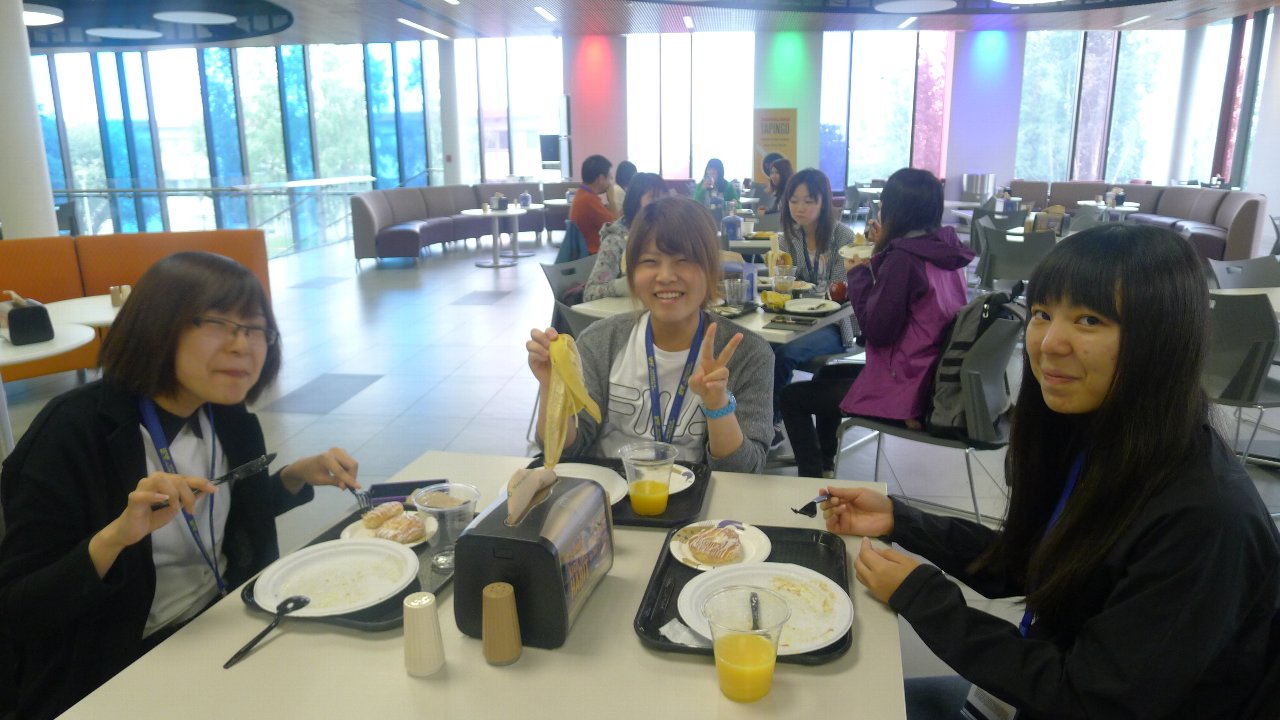 ついに最終日になりました。午前中は英語クラスの試験のため、学生は市バスに乗車してショッピングセンターへでかけていきました。試験は教室ではなく、街の中で行われます。店員さんに質問して商品を選ぶ、一緒に写真を撮るなど様々な課題が与えられ、クリアすると合格になります。2週間の滞在で話すことに自信をつけている学生達は、すんなりと課題をこなしていたようでした。スポーツ用品点の銃のコーナーでは、生まれてはじめて本物のライフルを手にする姿もありました。