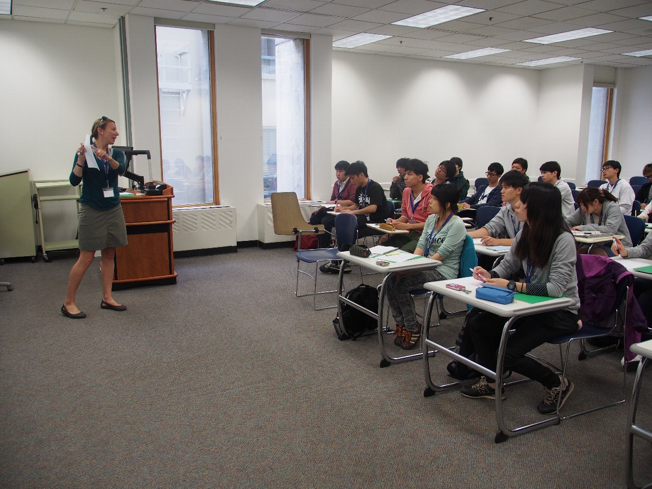 今朝から英語コミュニケーションの授業が始まりました。今年もお世話になっているDaff先生とKim先生の教室にわかれ、15名の少人数で受講します。Daff先生のクラスでは円卓になり、英語で会話する練習からスタート。Kim先生の教室でも英語を使うことから始まりました。これからフェアバンクスの町にでて市民とコミュニケーションをとる、実践的な講義が行われます。学生たちは、まだ英語をしゃべることに不慣れなようですが、次第に慣れて、自信をつけてくれるはずです。