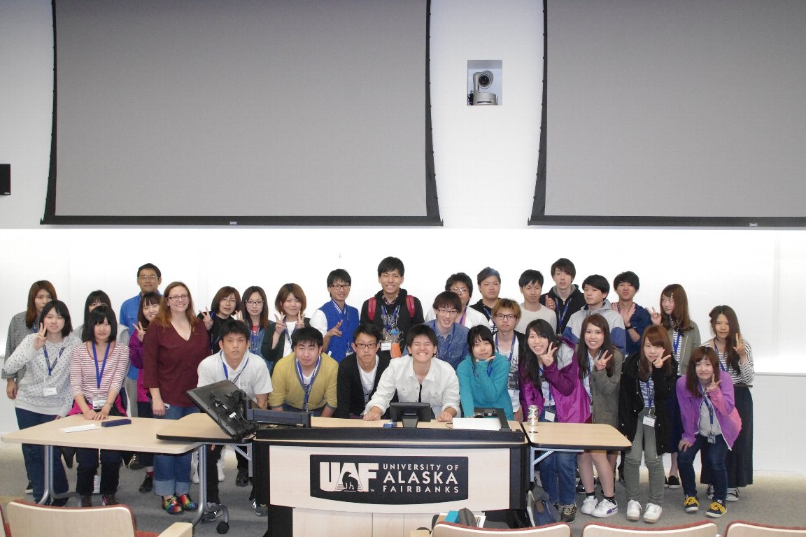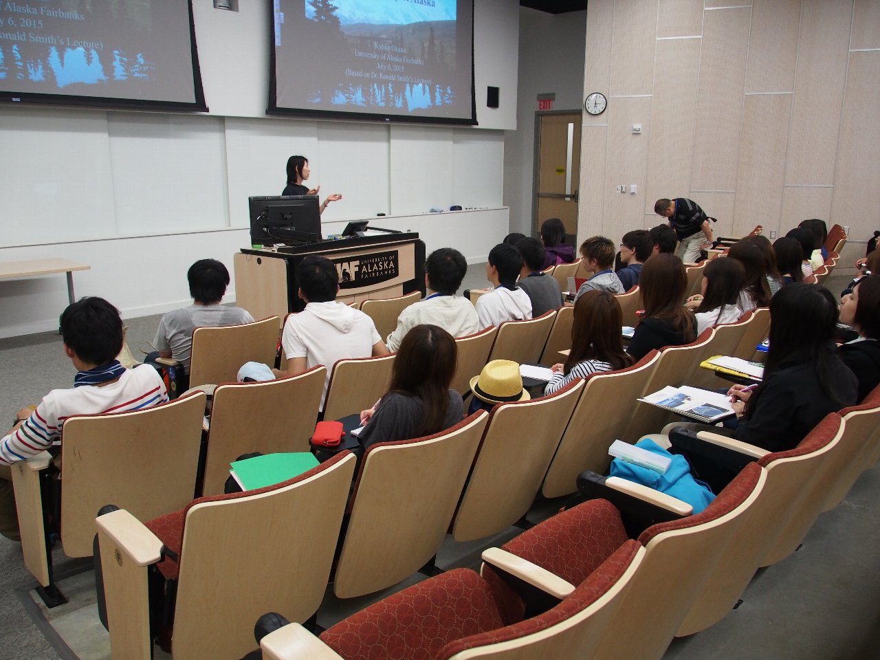 今年もアラスカ実習(環境開発実習)が始まりました。この講義では、米国アラスカ州フェアバンクスにあるアラスカ大学フェアバンクス校(UAF)に2週間滞在し、UAFの講師陣による語学や専門講義を受講し、豊富な野外巡検によってアラスカの自然や文化を体験するプログラムを組んでいます。