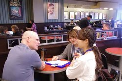 アラスカ大学で行われる英語コミュニケーションの授業は非常に実践的なカリキュラムが組まれています。今日は市バスにのってフェアバンクスのダウンタウンへ移動し、そこで教員に指定されたお店に入って買い物や質問をする課題が与えられました。滞在6日目になると度胸がついてきたようで、学生たちは店員や市民、観光客との会話に、楽しみながら挑戦したようです。