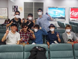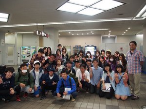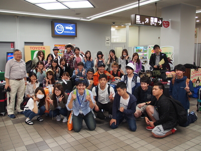 札幌へ戻られる福田先生とはここでお別れです。2015年の環境開発実習の日程はすべて終了です。岡山空港で解散式を行い、名残を惜しみつつ福山へ戻るバスへ乗り込みました。