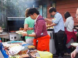 vボートツアーで楽しんだ後は、英語コミュニケーションの授業を担当されているKim先生のご自宅へ。Kim先生は、昨年に続いて今年も、私たちをホームパーティーに招待してくださりました。森に囲まれた広大な敷地があり、バーベキューをいただきながら話がはずみました。アラスカ流のパーティーのもてなしをいただいたことも、よい経験になったと思います。明日からは通常通りの授業に戻ります。(S)