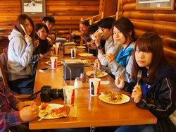 デナリ国立公園見学の後、ホテルが立ち並ぶエリアにあるピザレストランで夕食。アメリカらしい、豪快なピザをいただきました。一人2枚の計算で注文してありましたが足りず、追加したピザも完食。胃袋の若さを見た夕食でした(S)。