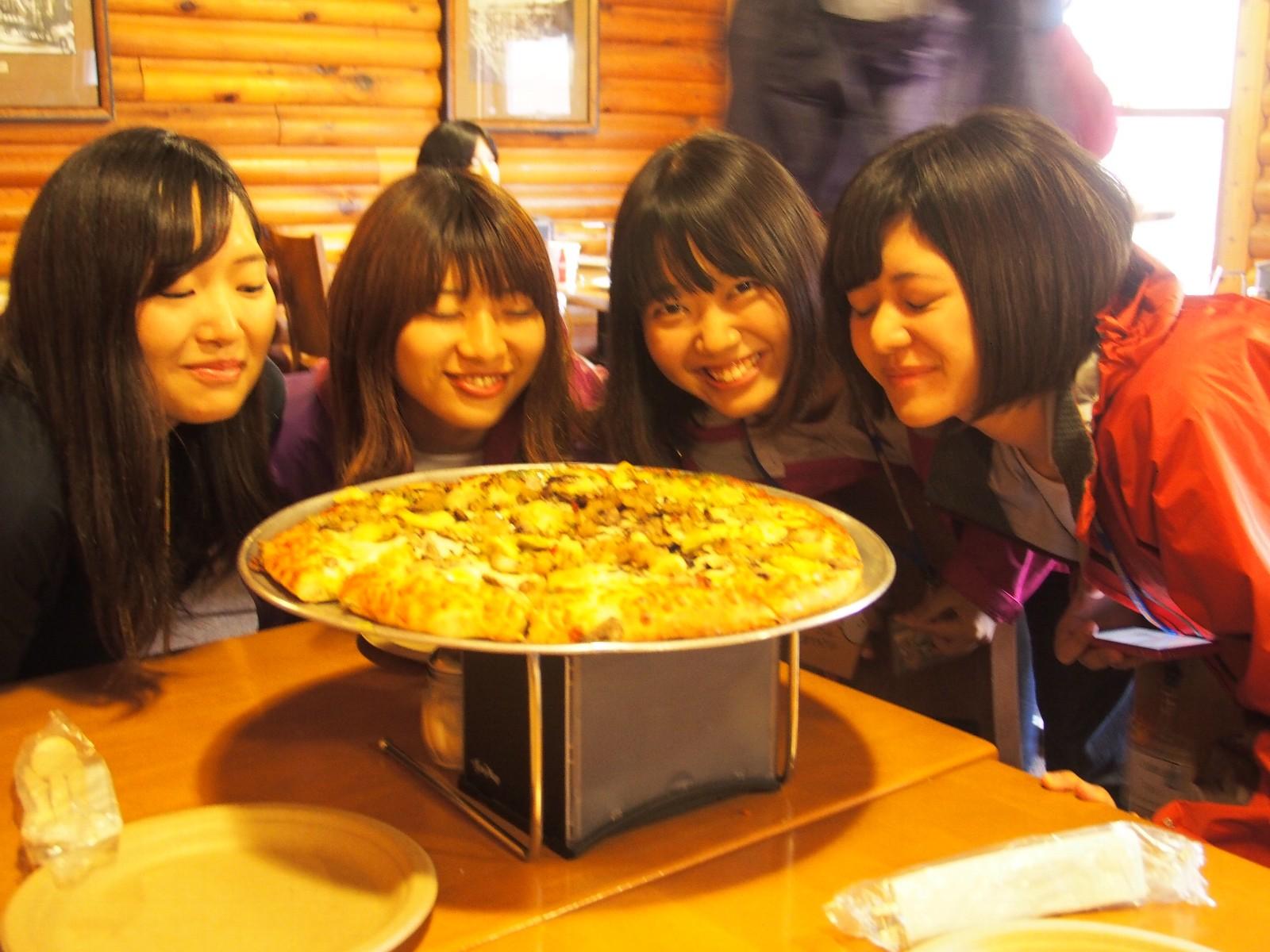 デナリ国立公園の後はピザレストランへ.アメリカらしい巨大サイズのピザをいただきました.切ったピザ1枚でもじゅうぶん1食分はありそうですが,一番食べた人は4枚だったようです.(S)