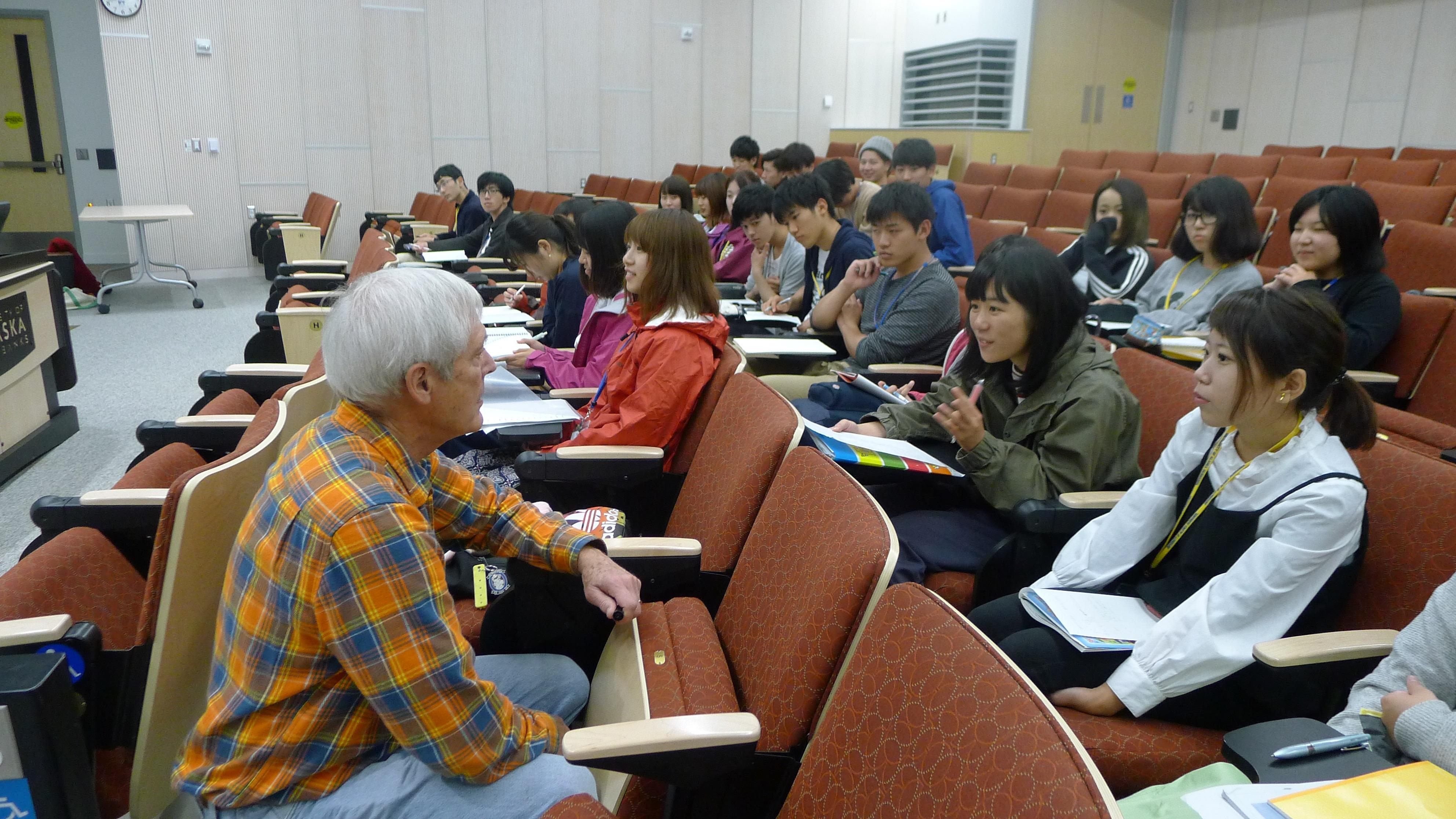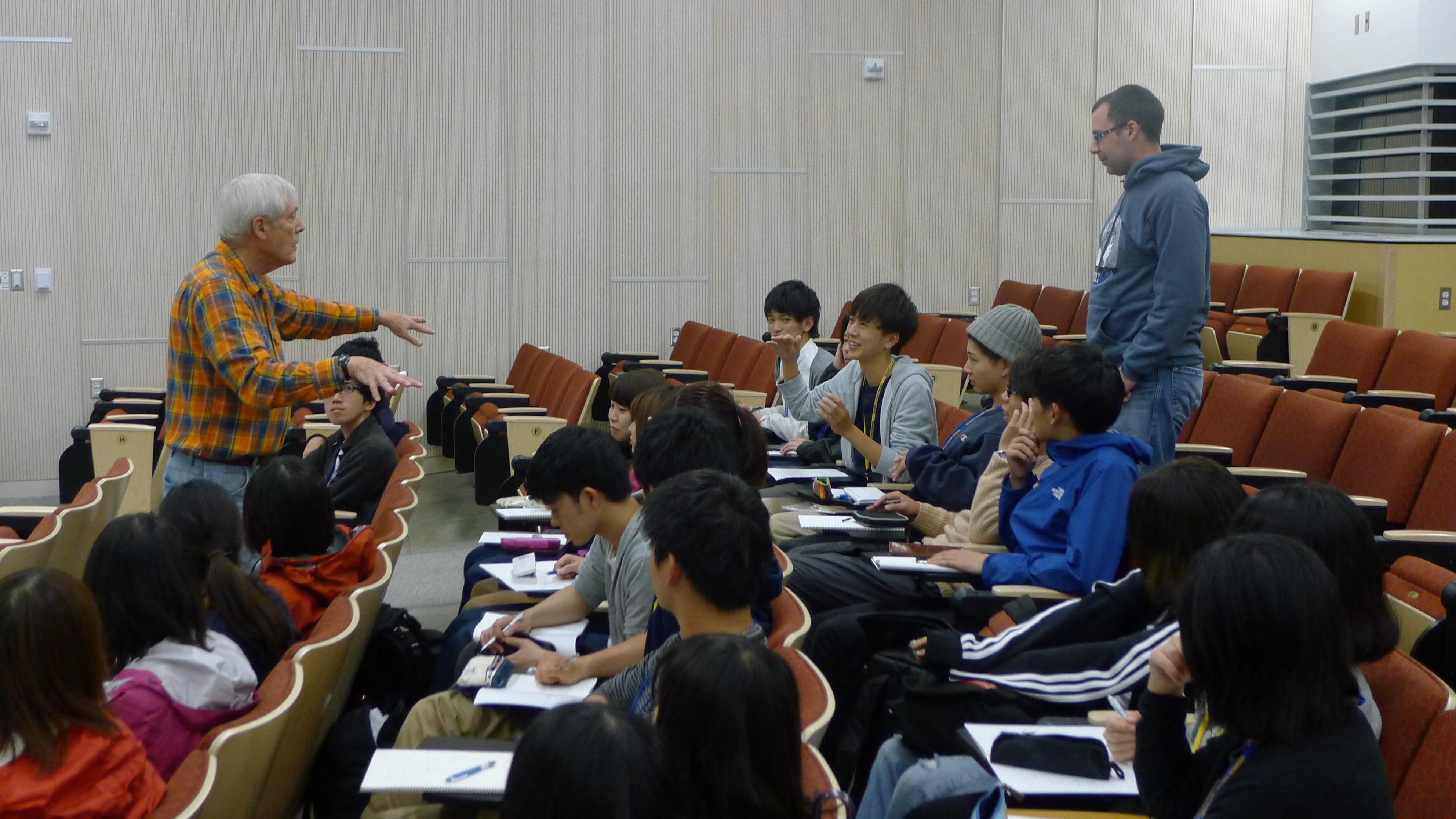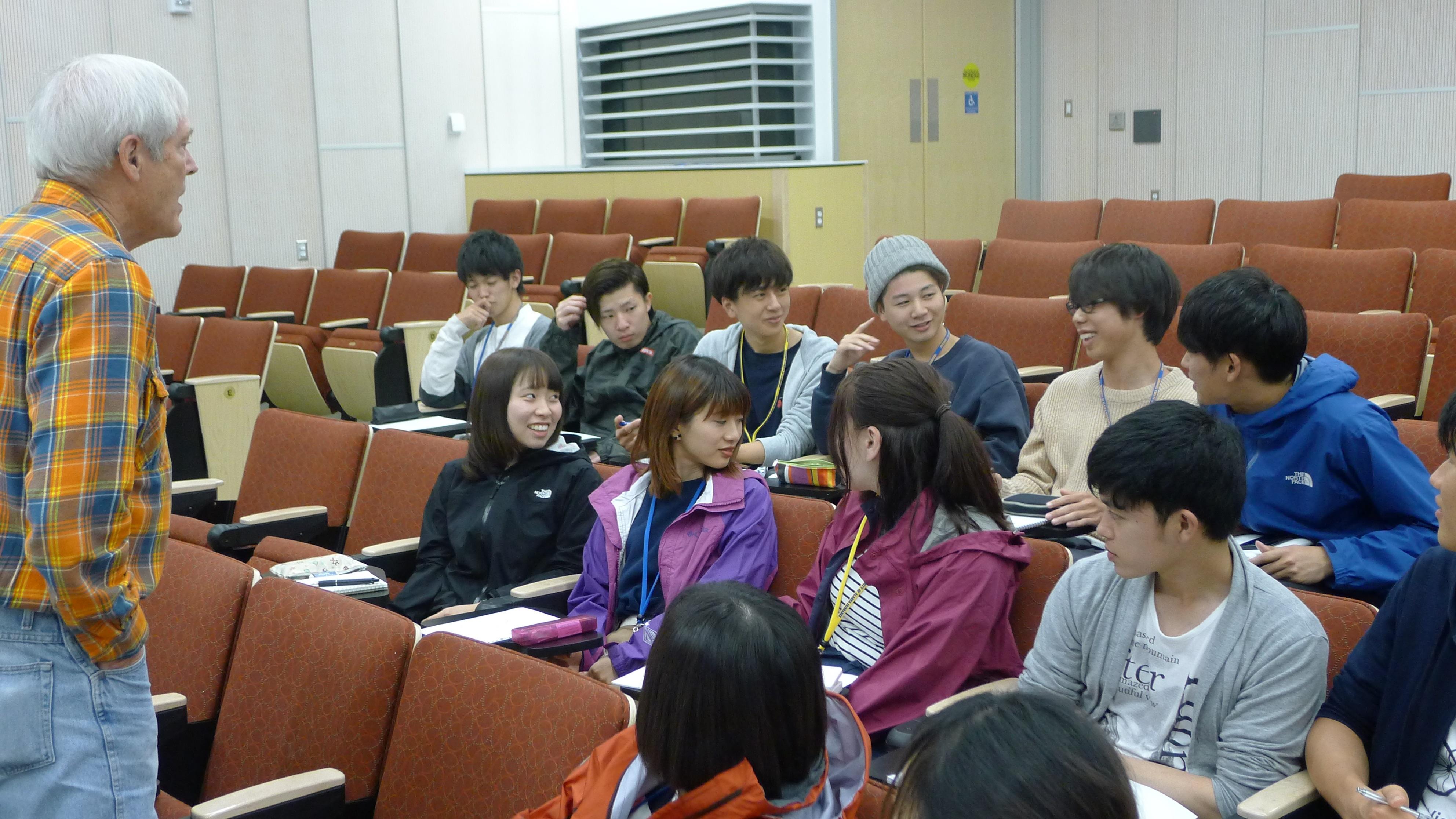 講義終了後、質問することをためらっていた学生たちも、ひとりが勇気を出して質問すると、次から次へと手が上がり、Smith先生との英語でやりとりを楽しんでいました。