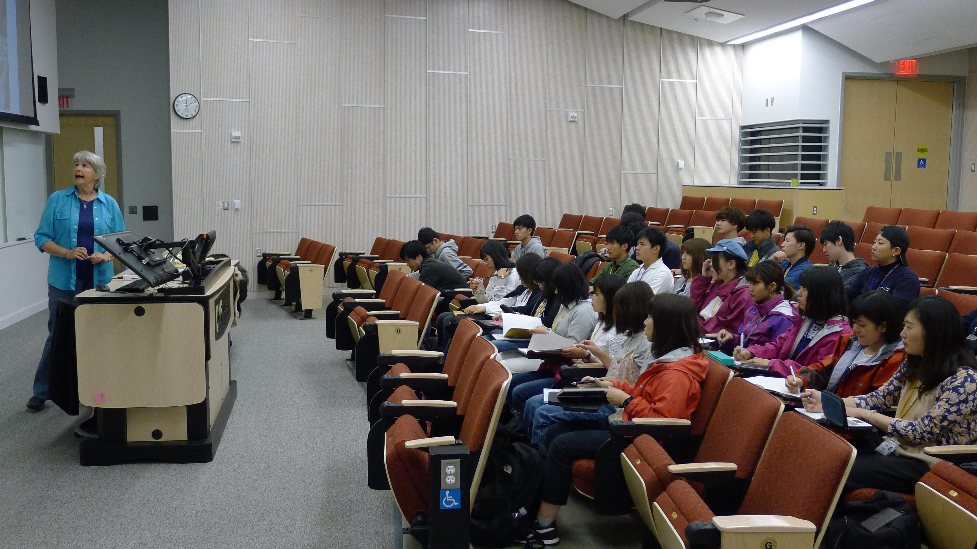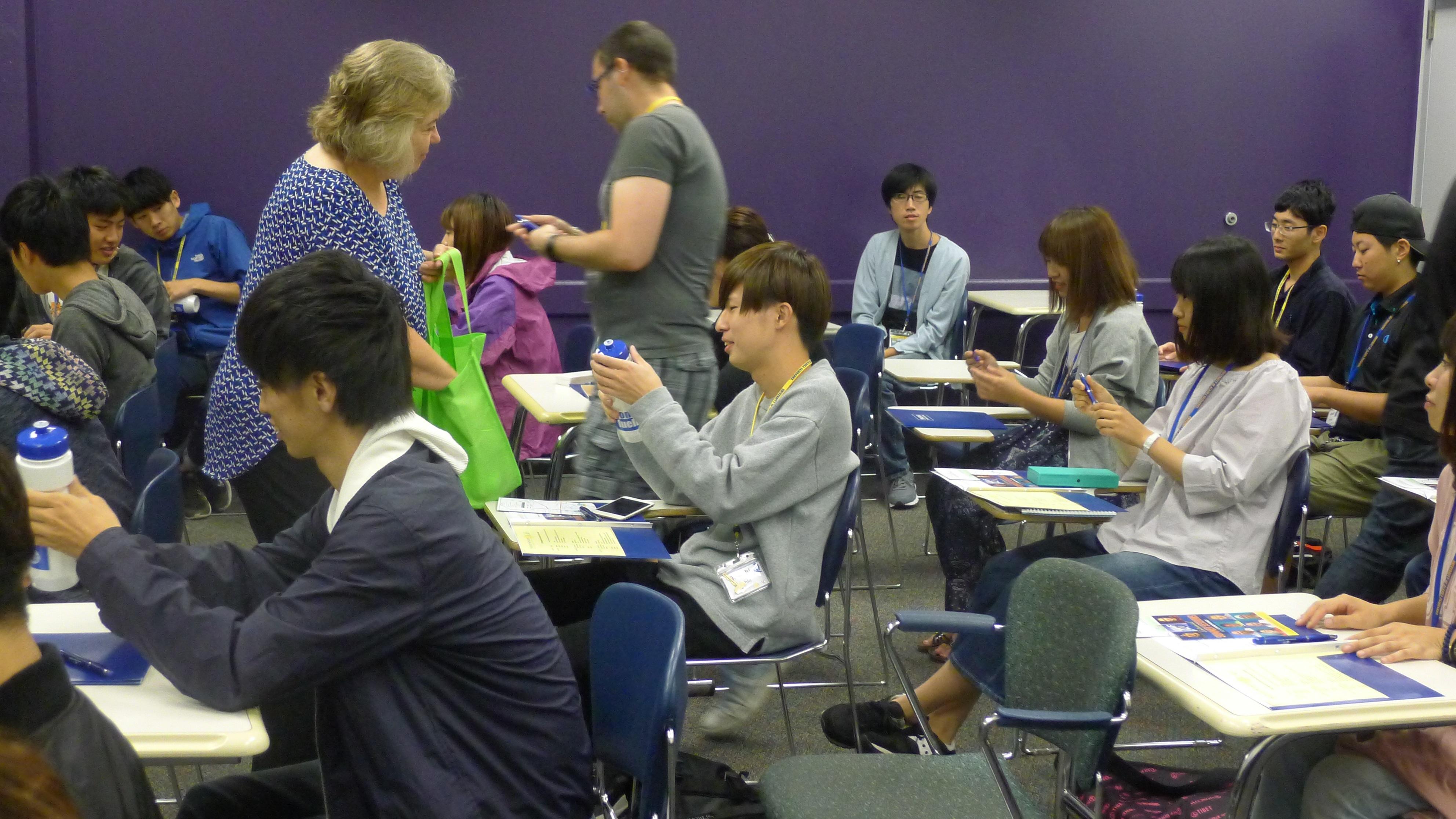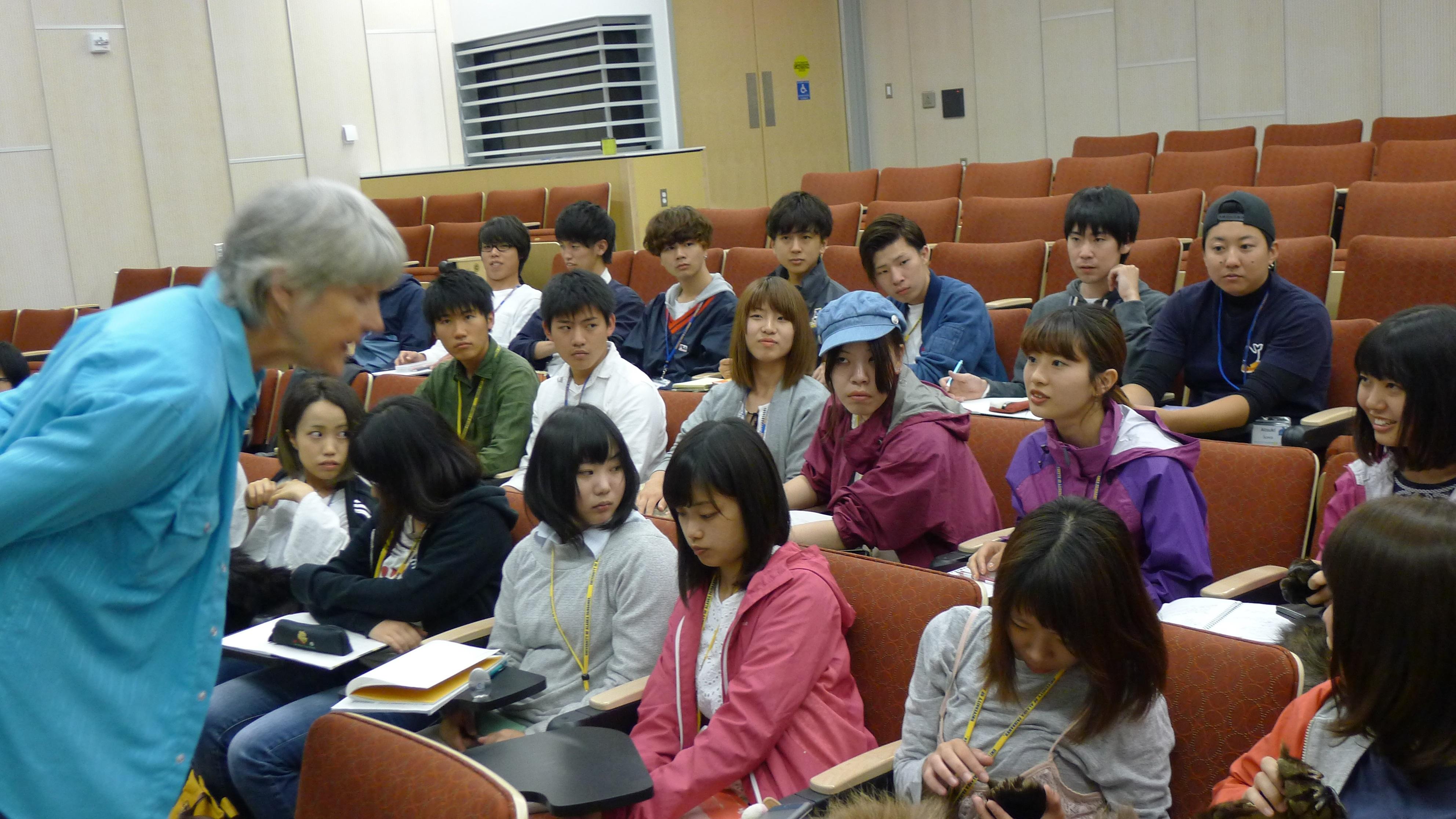 講義終了後、質問することをためらっていた学生たちも、ひとりが勇気を出して質問すると、次から次へと手が上がり、Smith先生との英語でやりとりを楽しんでいました。