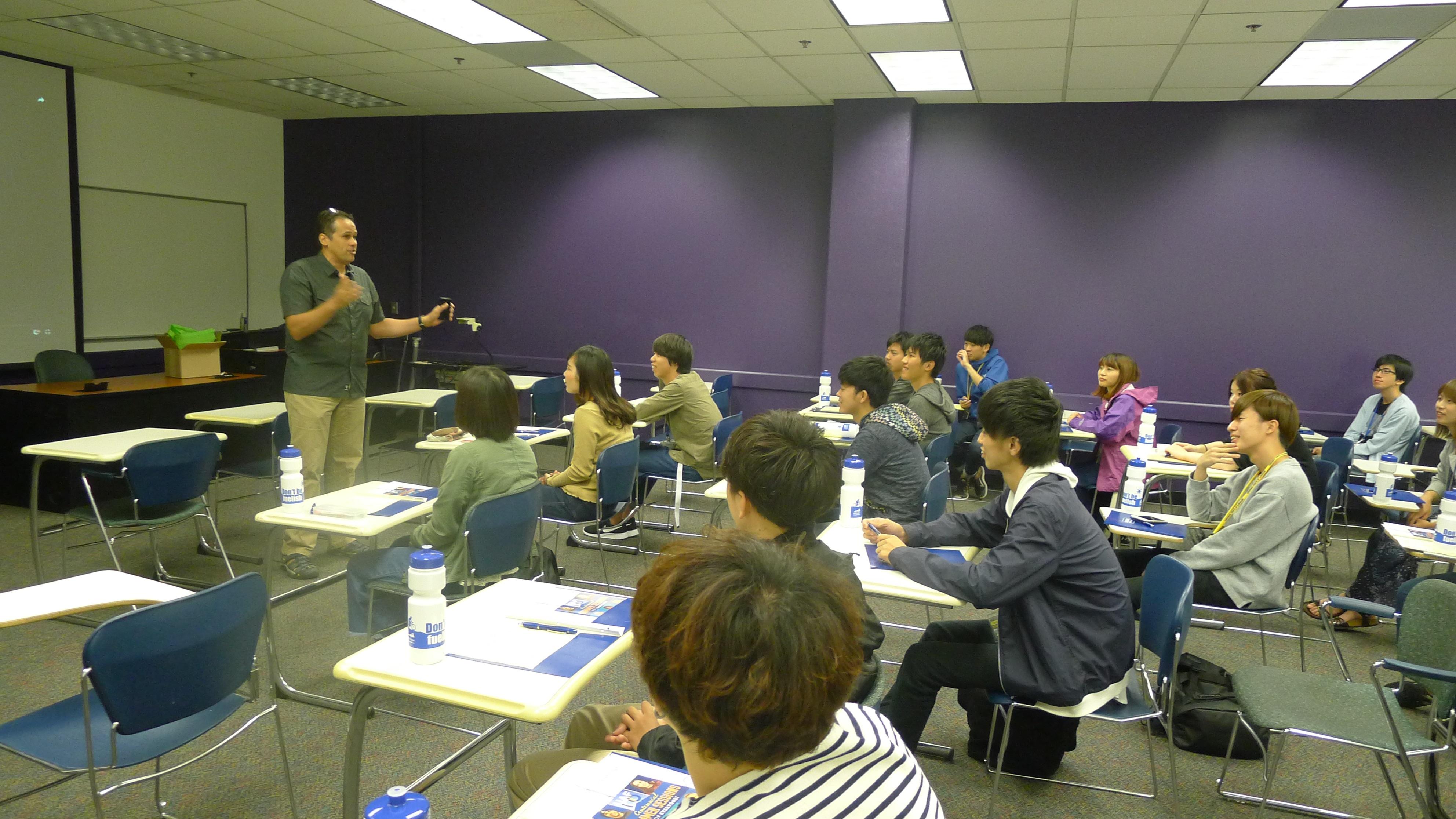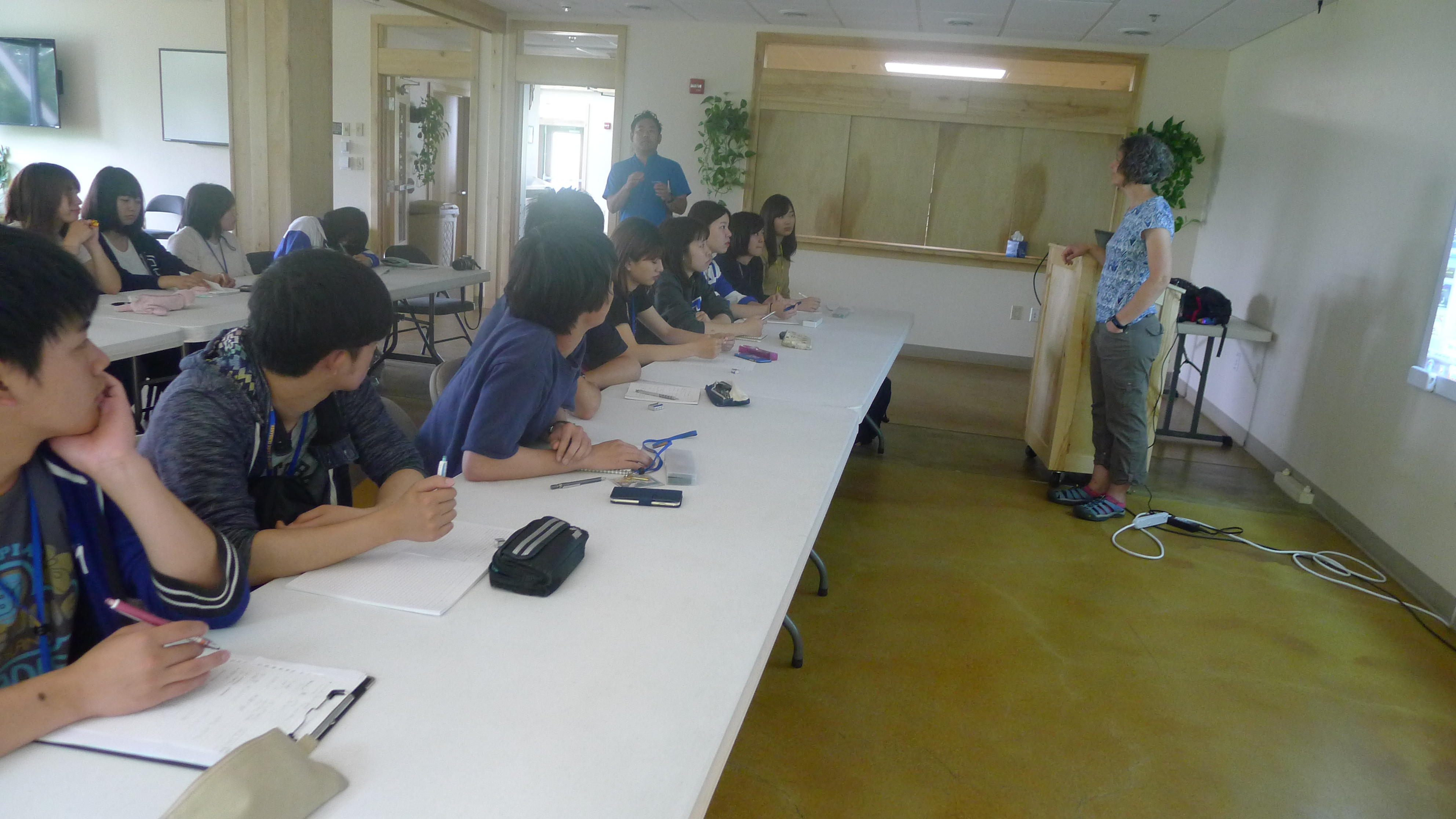 オリエンテーションでは、滞在中のお世話をしていただくJoe先生を始め、英語の授業を担当していただくKim先生とDan先生から、アラスカ実習のプログラム内容や実践的な英会話を学ぶ上での心構えを話していただきました。