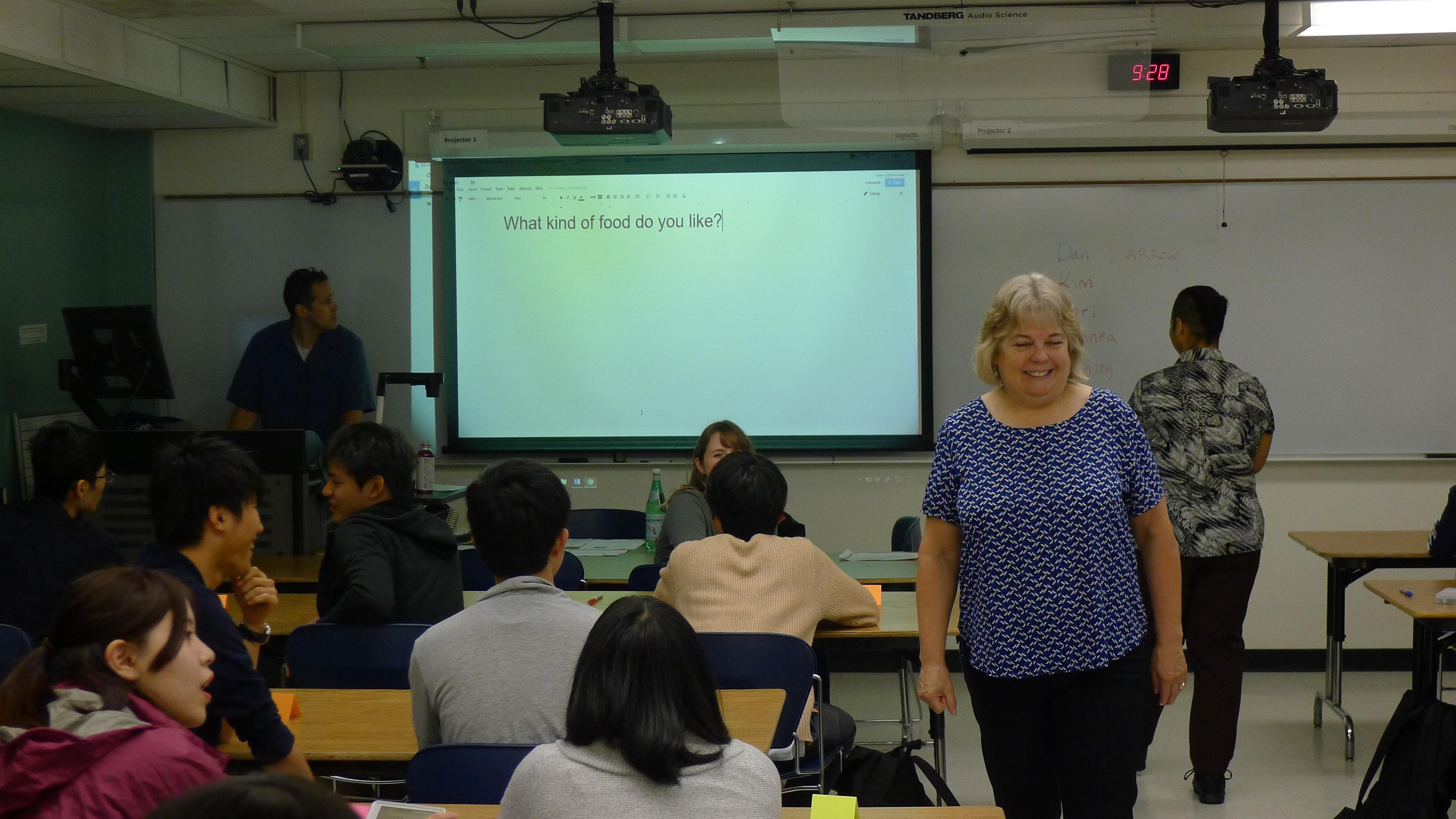 アラスカ大学滞在2日目。いよいよ今日から英語の授業が始まりました。27名の学生は2クラスに分かれ、それぞれKim先生、Dan先生から英会話を習います。
