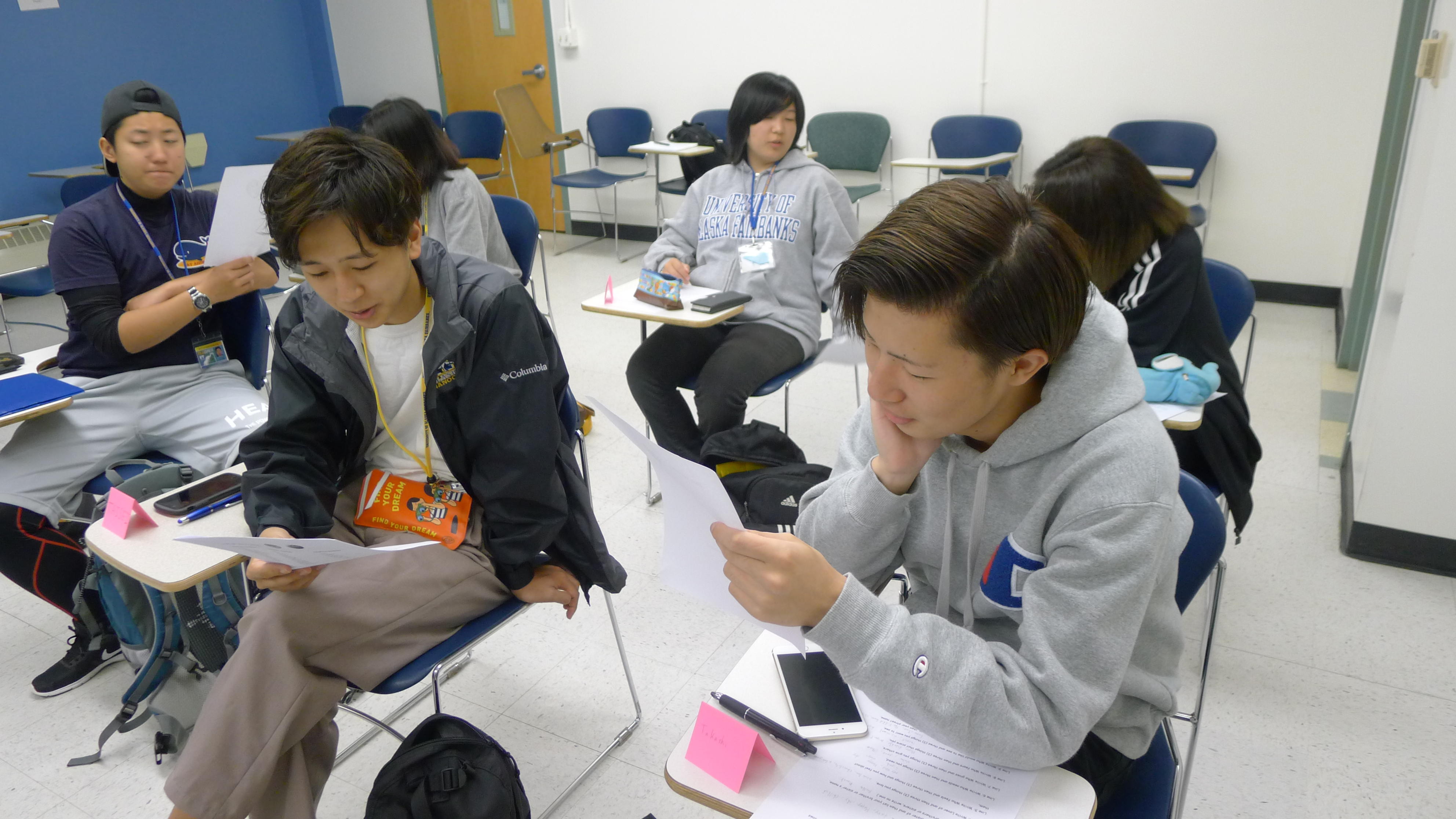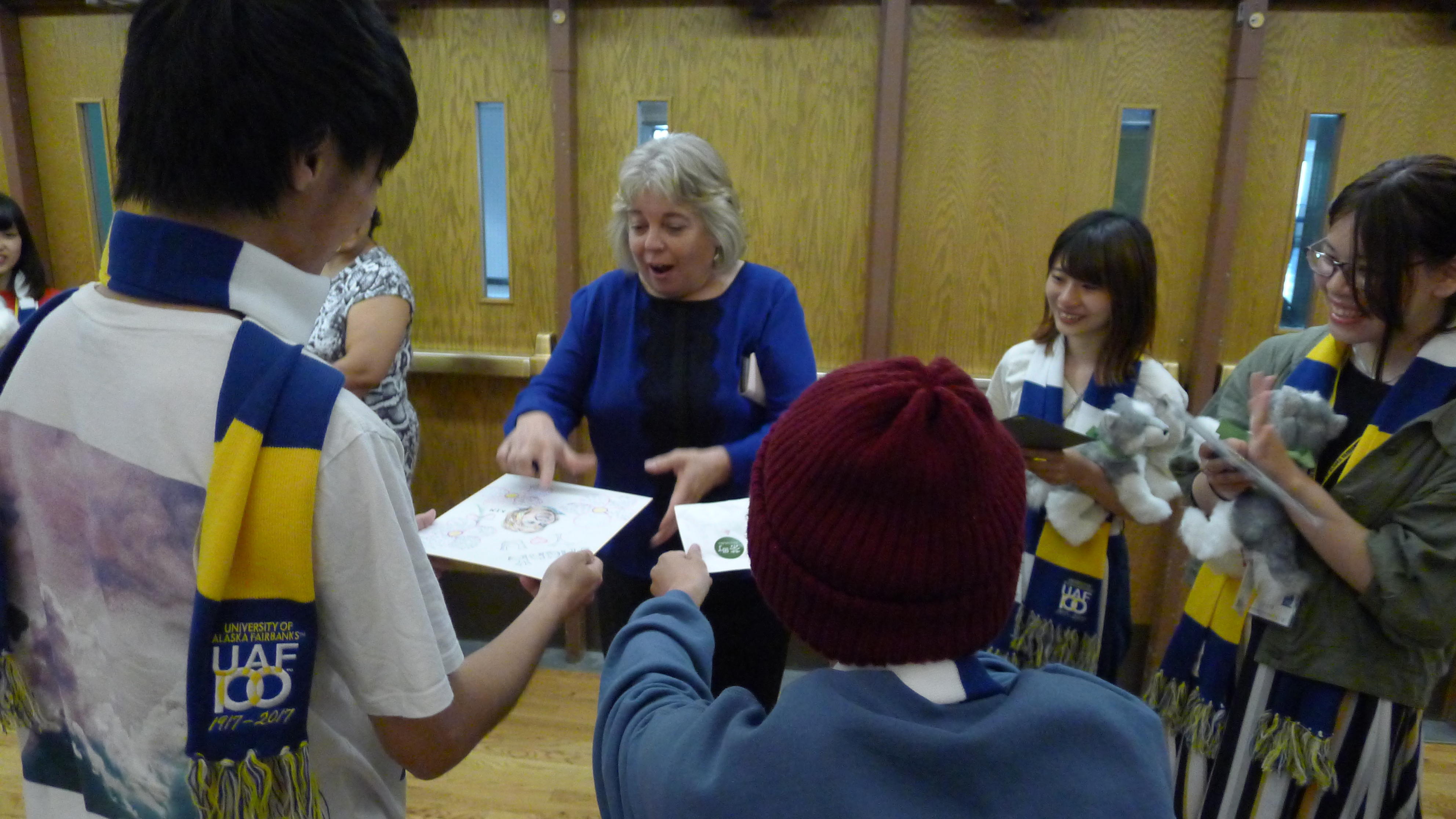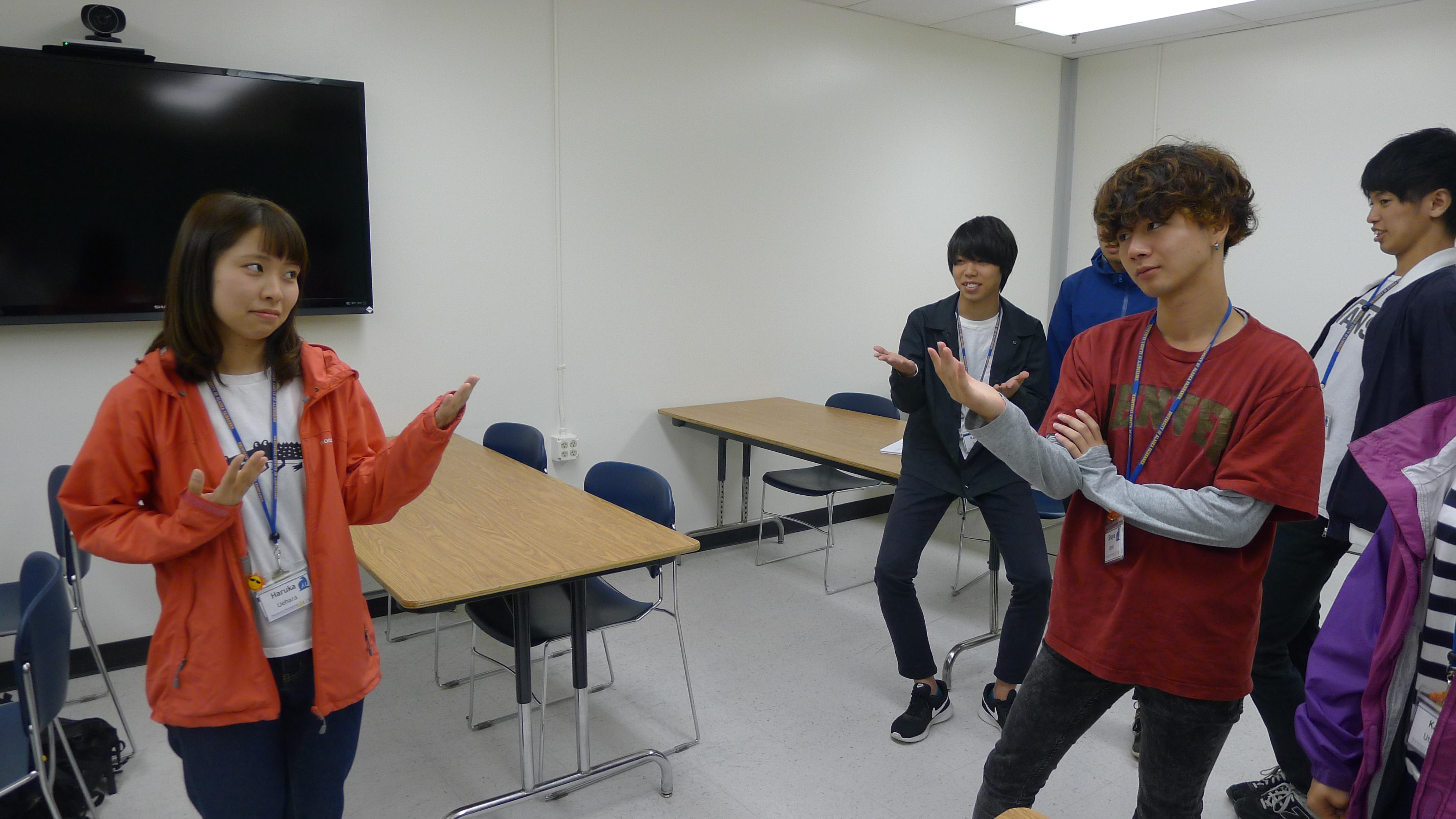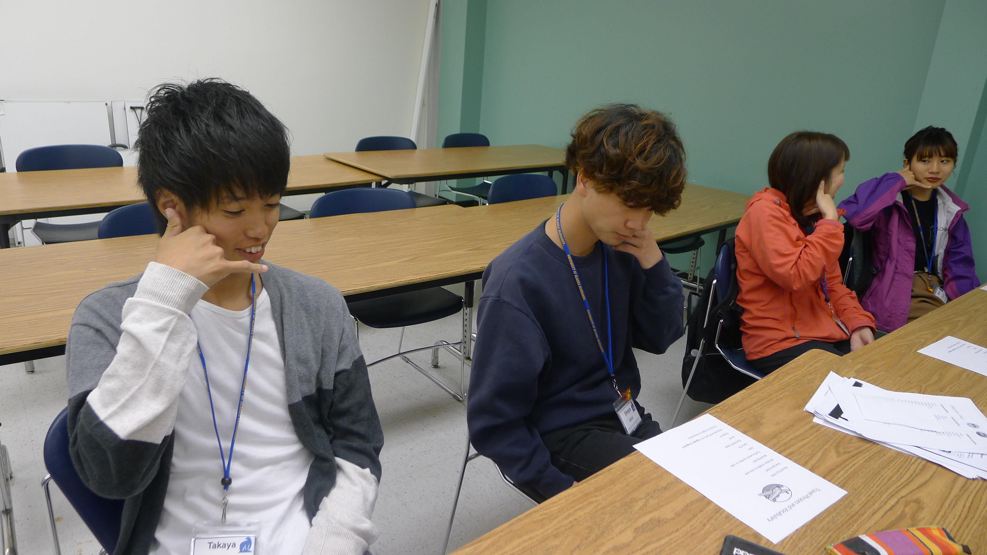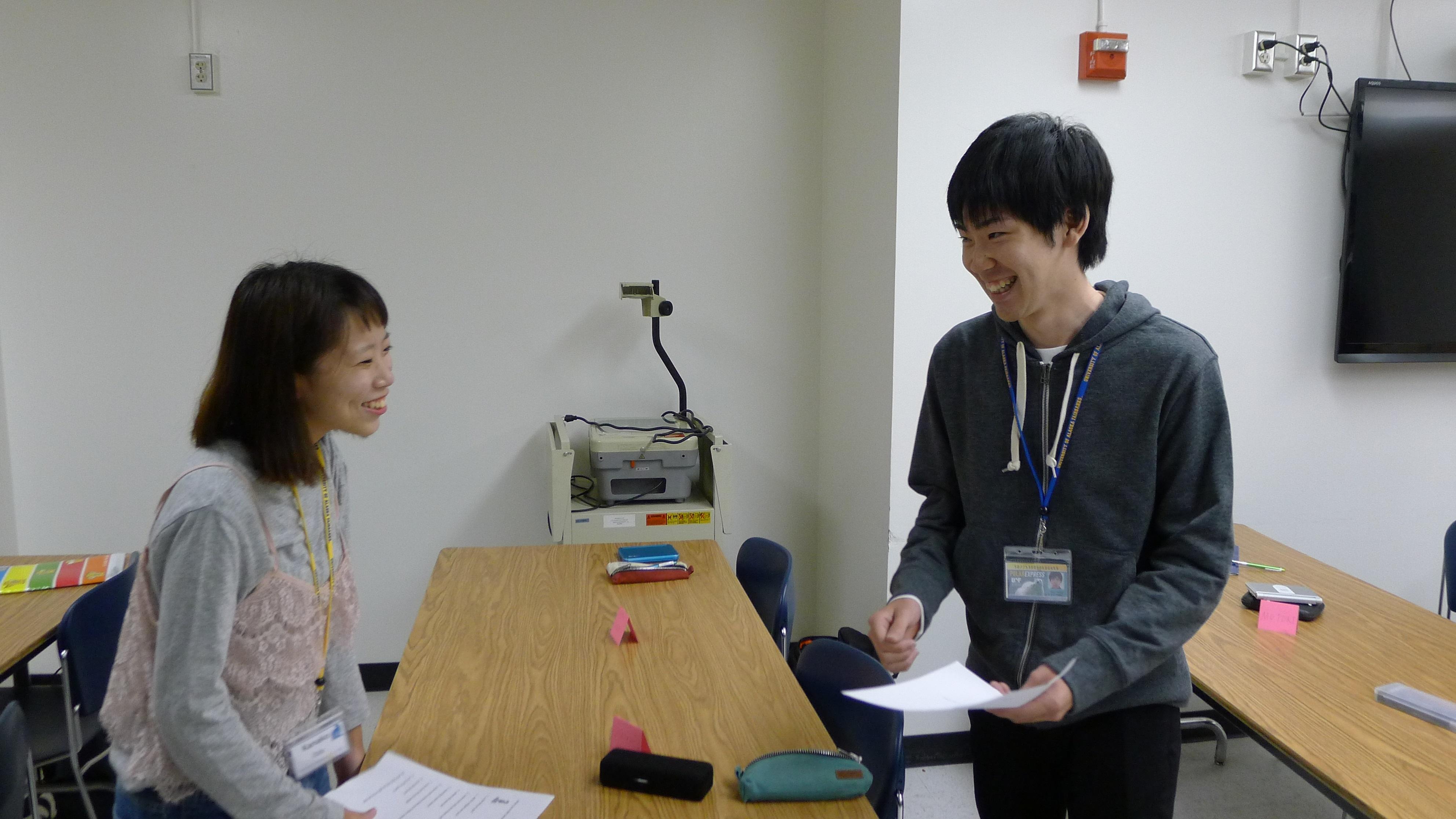 2人1組のペアを作って、「Why did you come to Alaska?」「What kind of food do you like?」など、簡単な質問とそれに対する回答を英語でやりとりします。当初、戸惑っていた学生たちも、次第に英語だけで受け答えするようになり、英語を話すことへに抵抗を感じなくなっていきました。