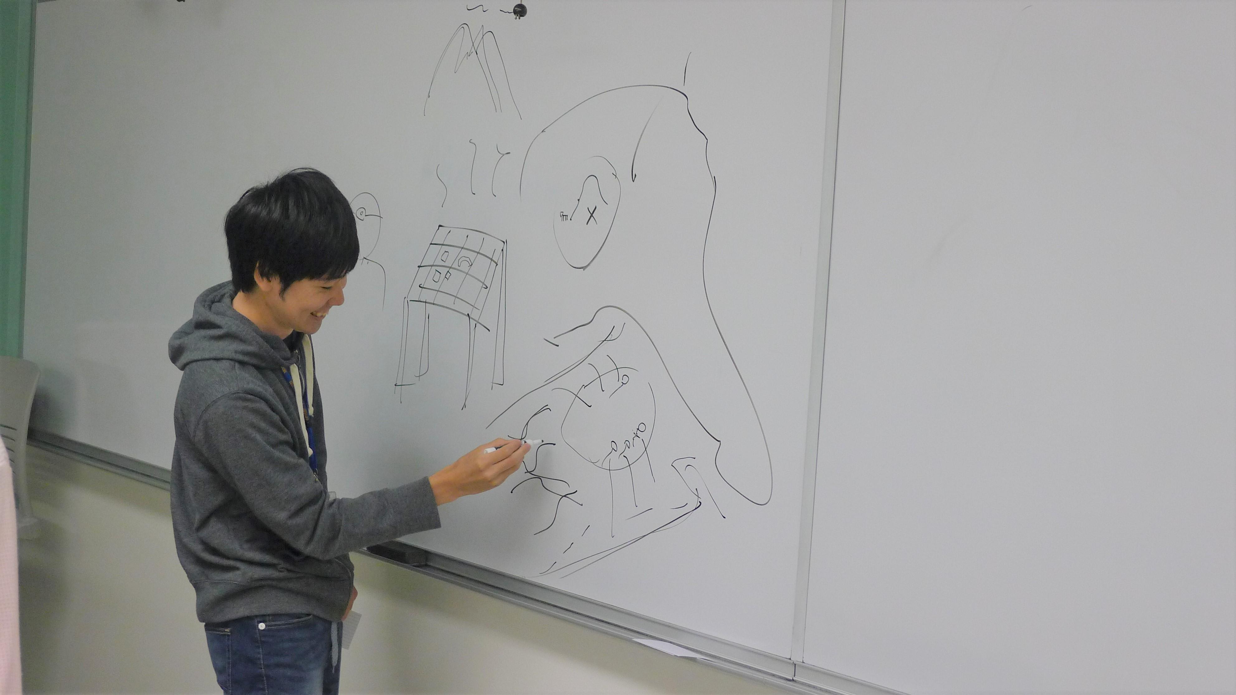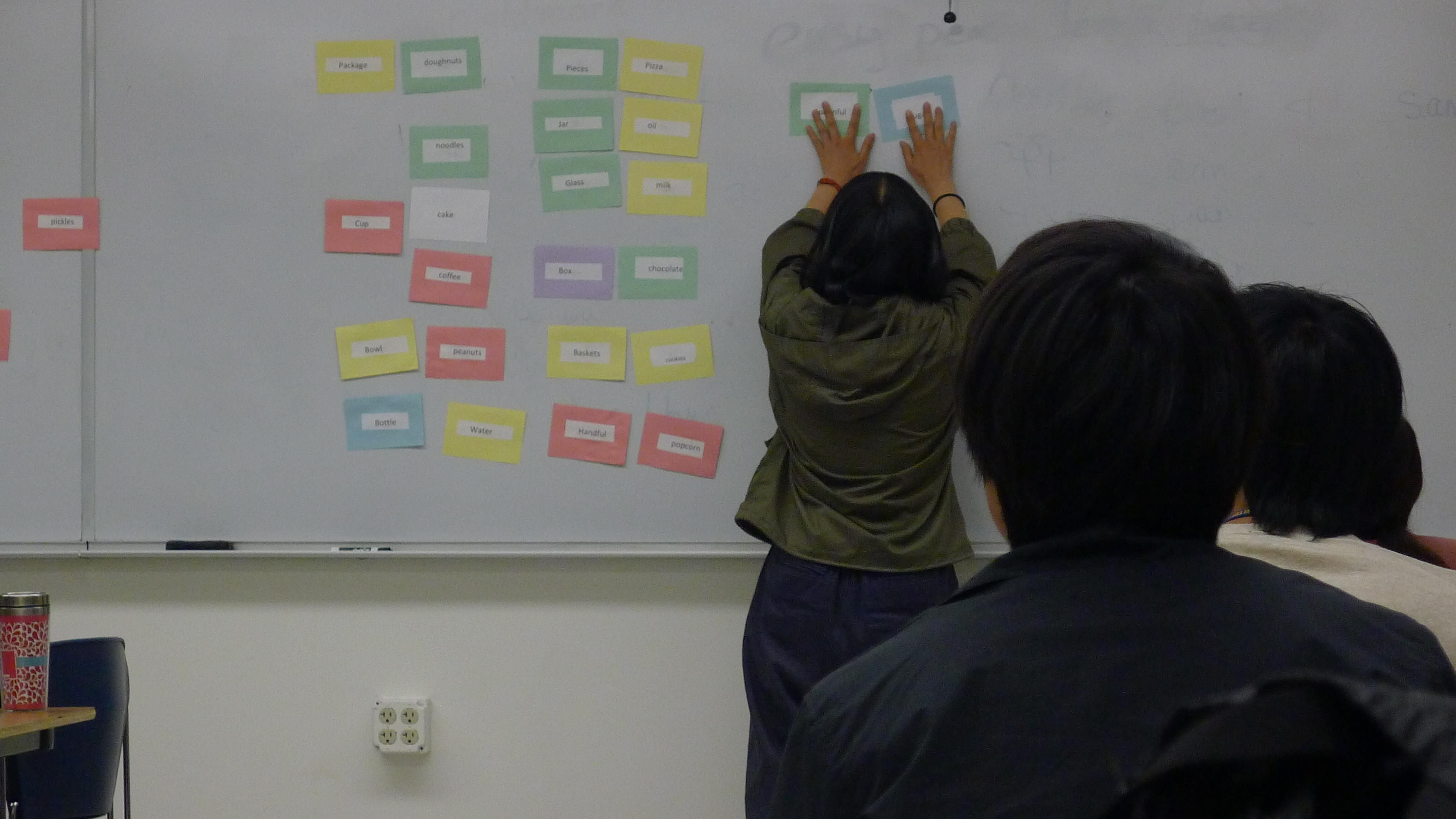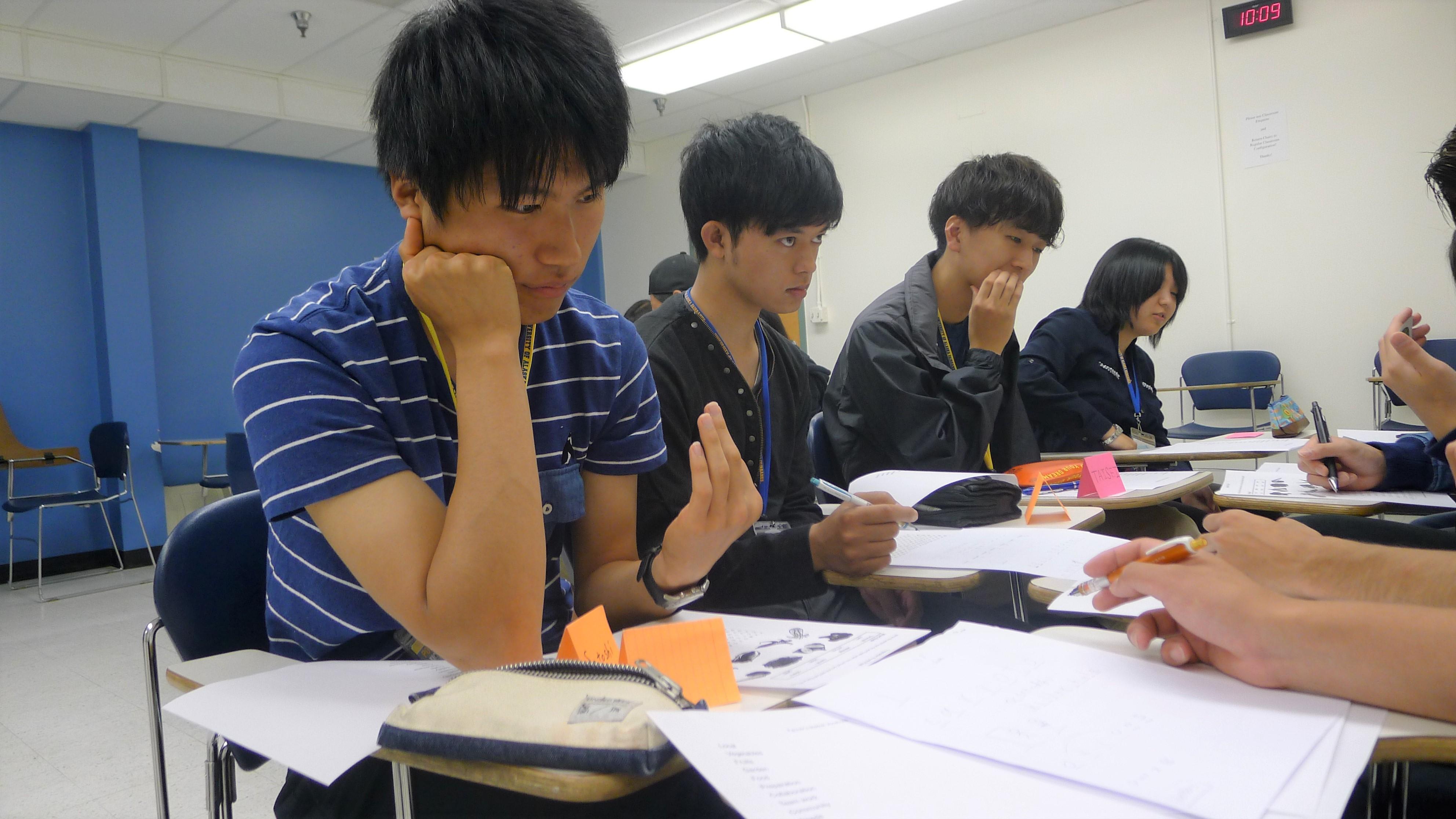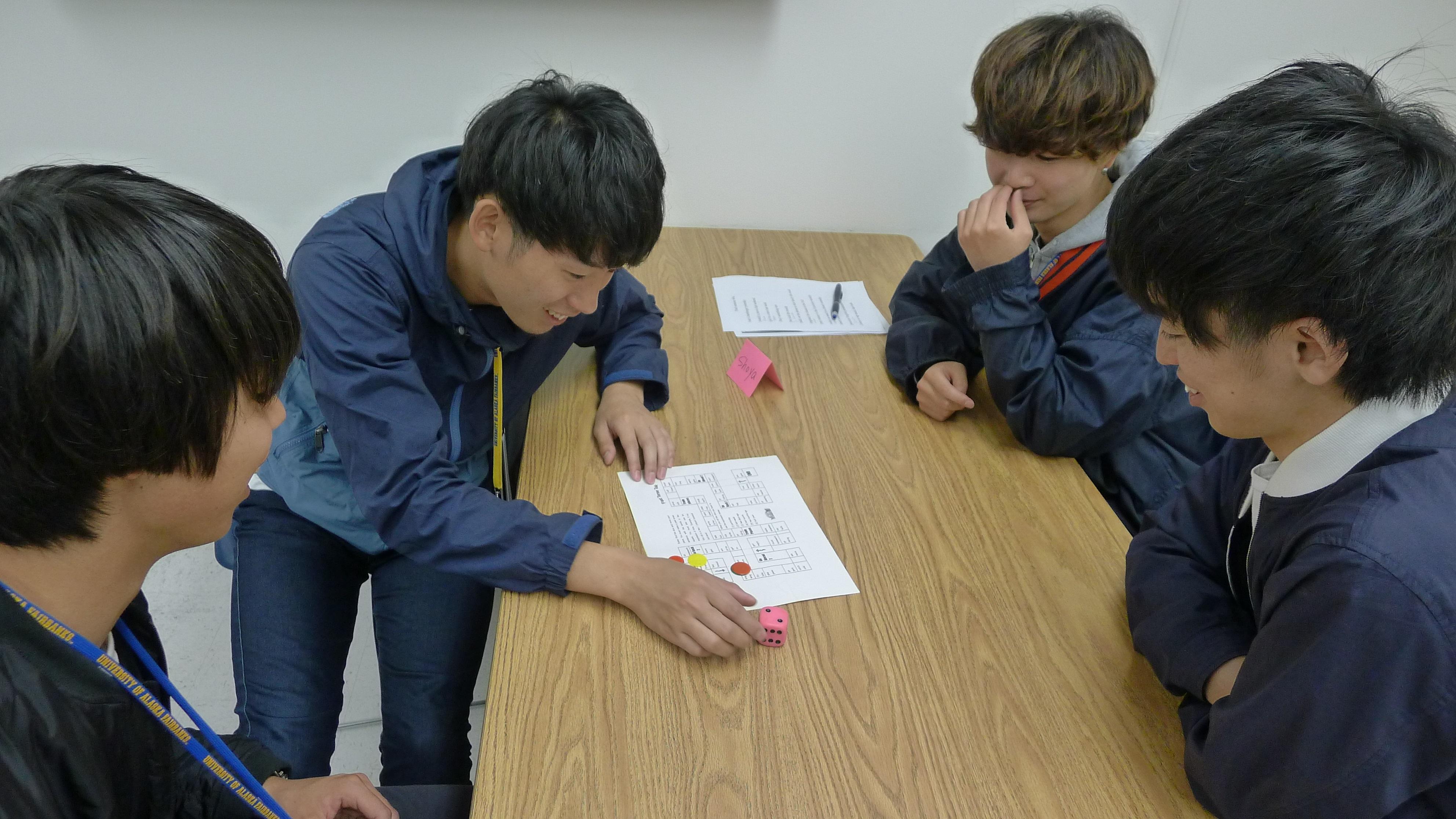 午前中は英会話の授業。まず、午後の講義に関連する英単語とその意味を確認しました。その後、アメリカで人気の遊びにチャレンジ。「Who am I」(人物の特徴に関する質問をしながら、相手が選んだ人物を当てる遊び)、「Once Upon a Time」(絵の描いたカードを一枚ずつ出していき、物語りを作り上げていく遊び)、「Scrabble」(アルファベットのピースを縦横に並べて、英単語を作る遊び)など、英語や英会話スキルを駆使して、楽しみながら取り組みました。