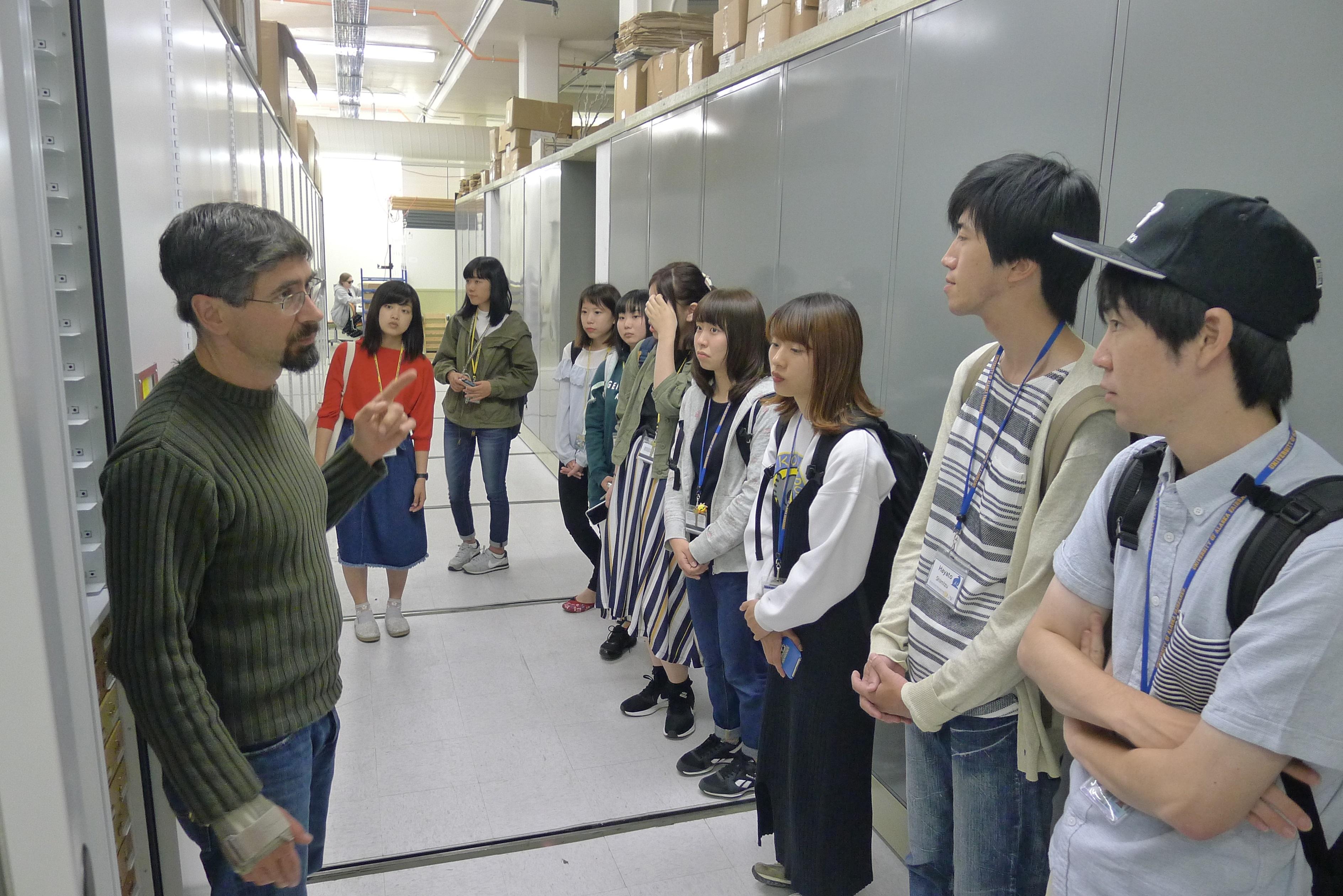博物館のSikes先生の案内で、一般の人が立ち入ることができないバックヤードを見学させていただきました。標本を作る過程や保存場所などを見て回り、展示室以外の広大な博物館の施設やそこで研究する先生方の様子を見ることができました。(M)