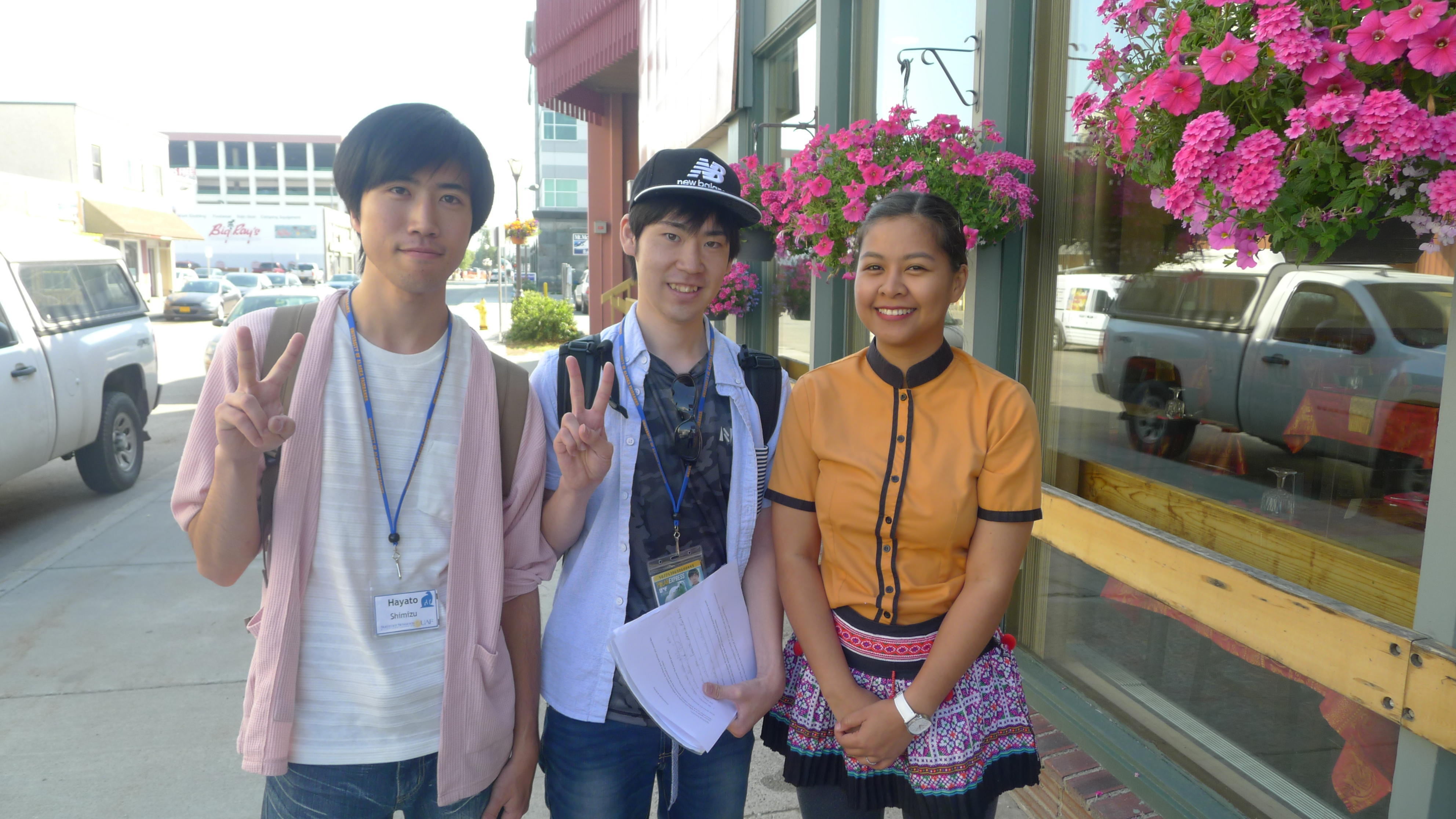 「最も人気のあるお土産は?」「一番好きなレストランは?」「フェアバンクスの観光名所は?」など、あらかじめ質問内容を考えておき、いざチャレンジ。勇気を出して声をかけてみると、アラスカの人たちは気さくに答えてくれます。ややおぼつかなげな英会話ながらも、学生たちはそれぞれ目的の答えを聞き出すことができました。