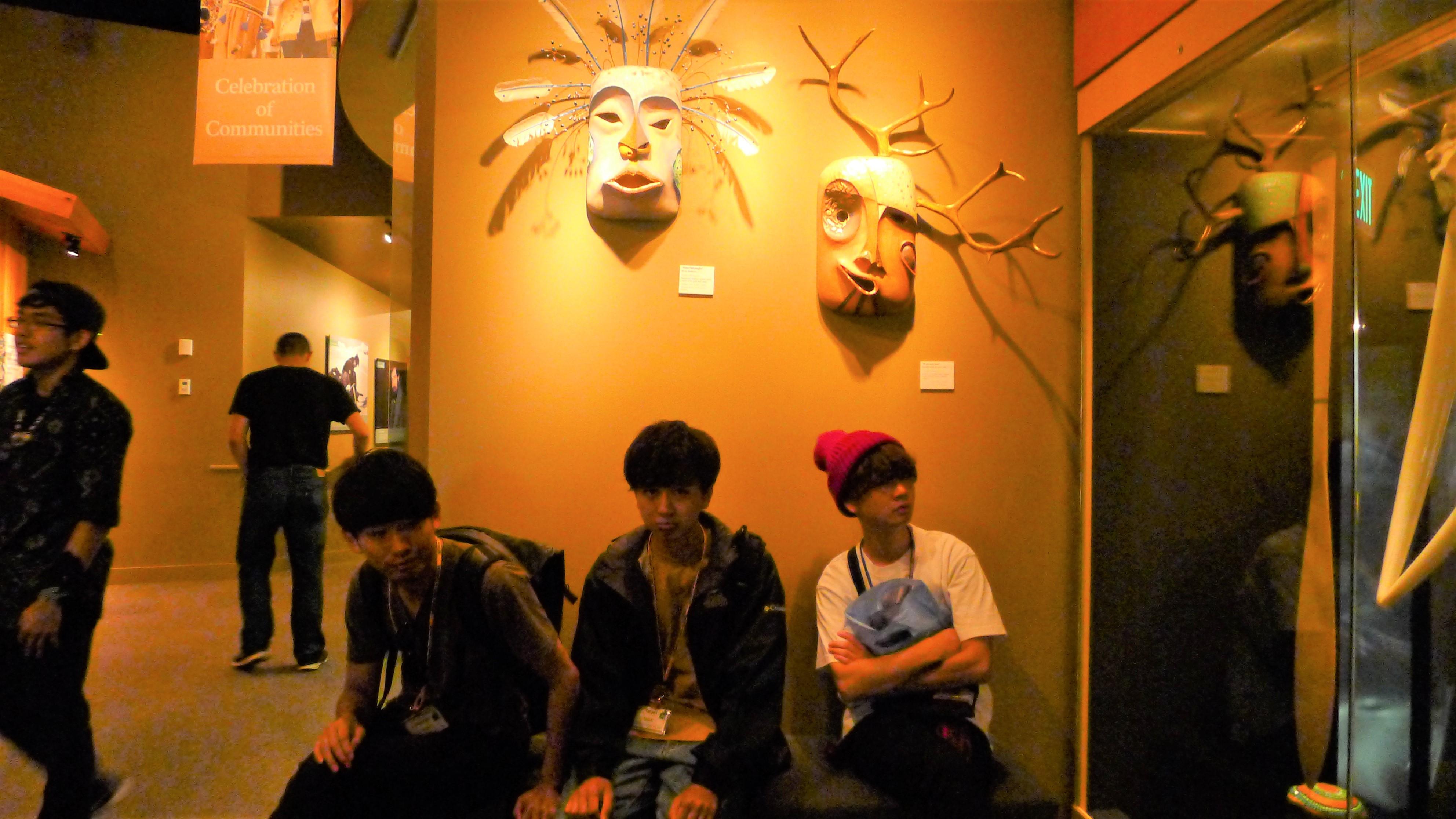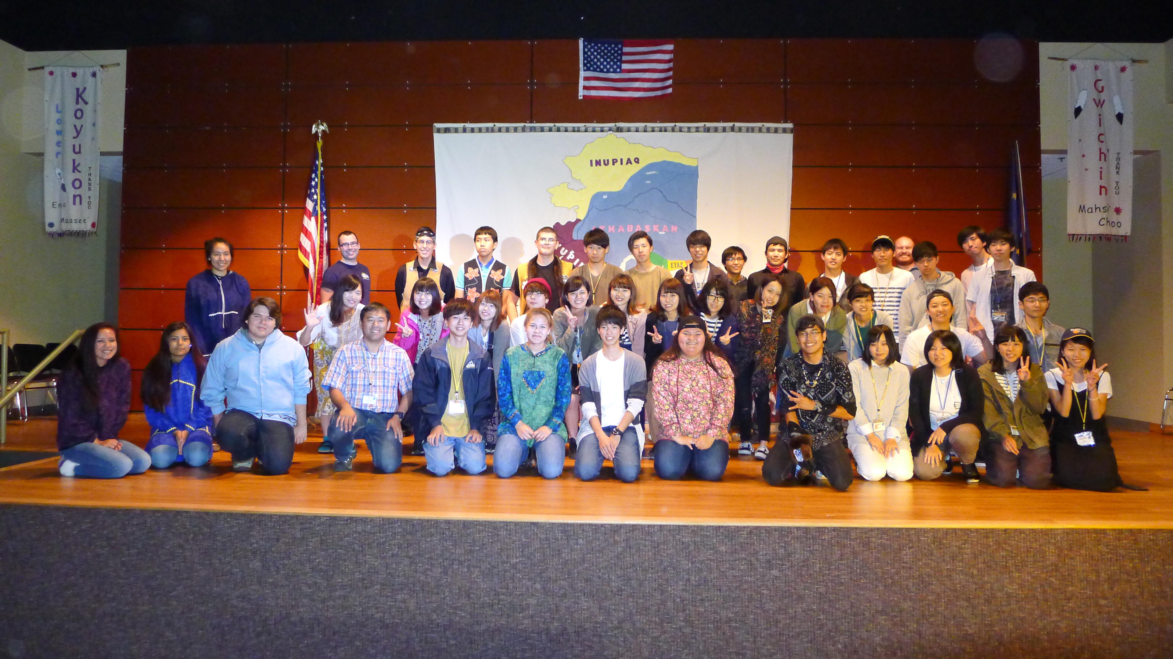 午後は、Morris Thompson Visitors Centerで、アラスカ先住民の伝統的なダンスを鑑賞しました。アサバスカンやイヌピアックの若者たちが様々なダンスを披露してくれます。舞台の上から誘いの言葉をかけられると、学生たちは次々に舞台に上がっていき、一緒にダンスを楽しみました。