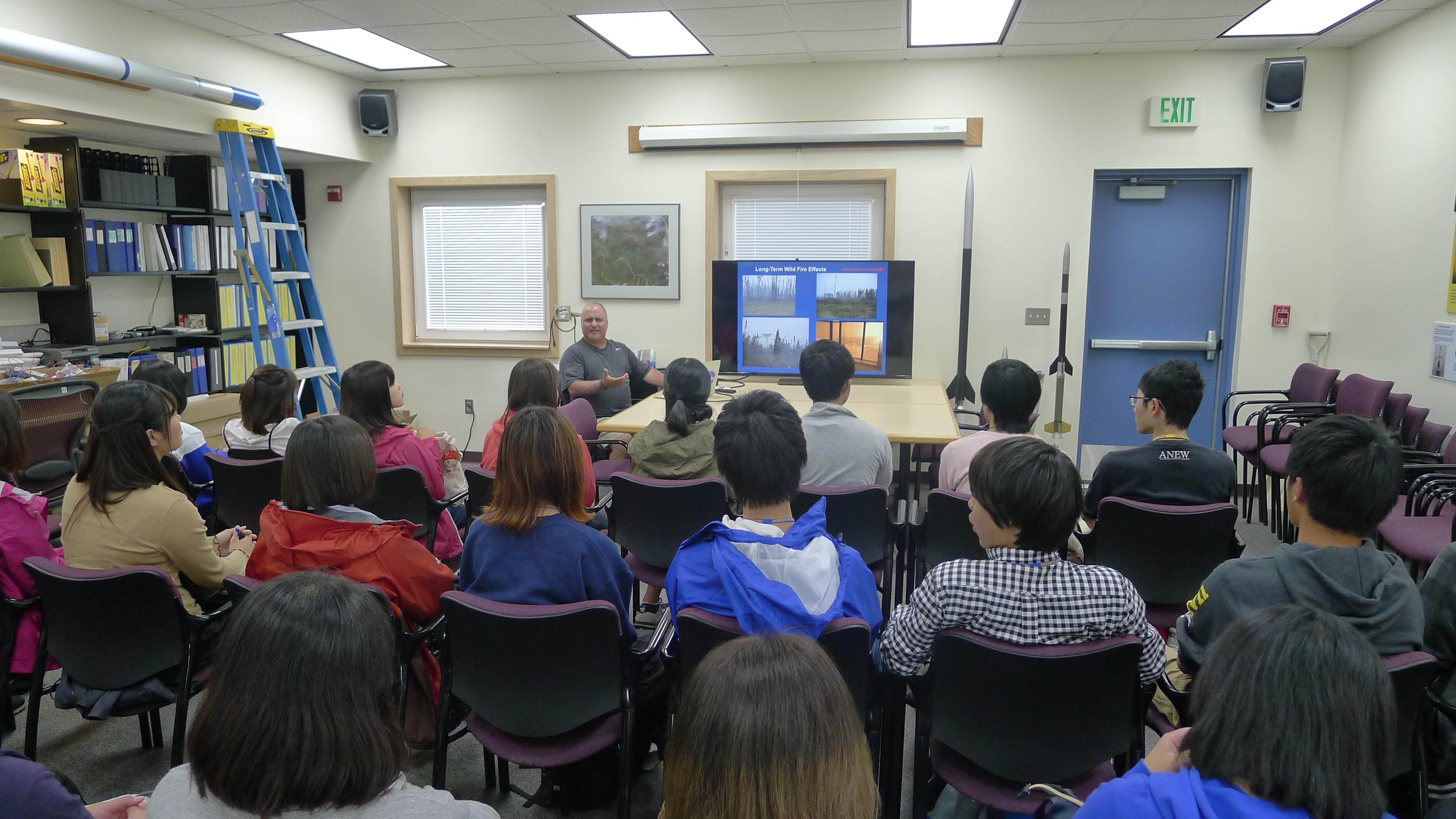アラスカ大学は、世界で唯一、大学としてロケット発射場をもっており、その重要な施設や、発射準備から観測までの流れを紹介していただきました。そのスケールの大きさに学生たちも息をのみながら見入っていました。
