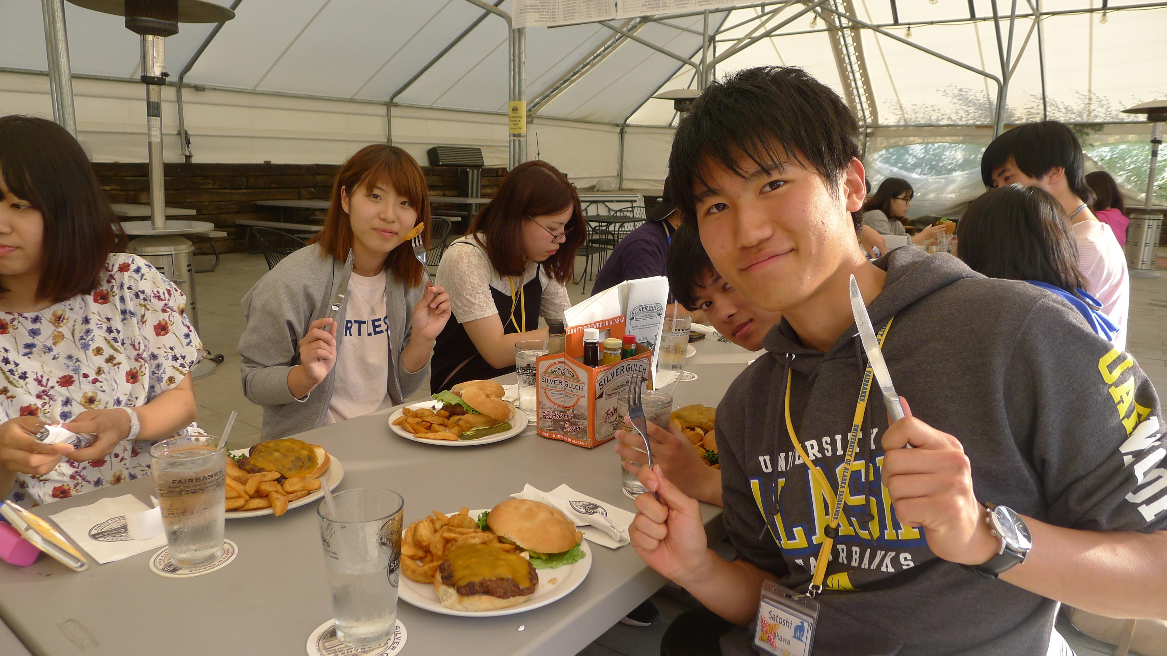 アメリカン・サイズの美味しいハンバーガーとフライドポテトで満腹になり、楽しい一日となりました。(M)