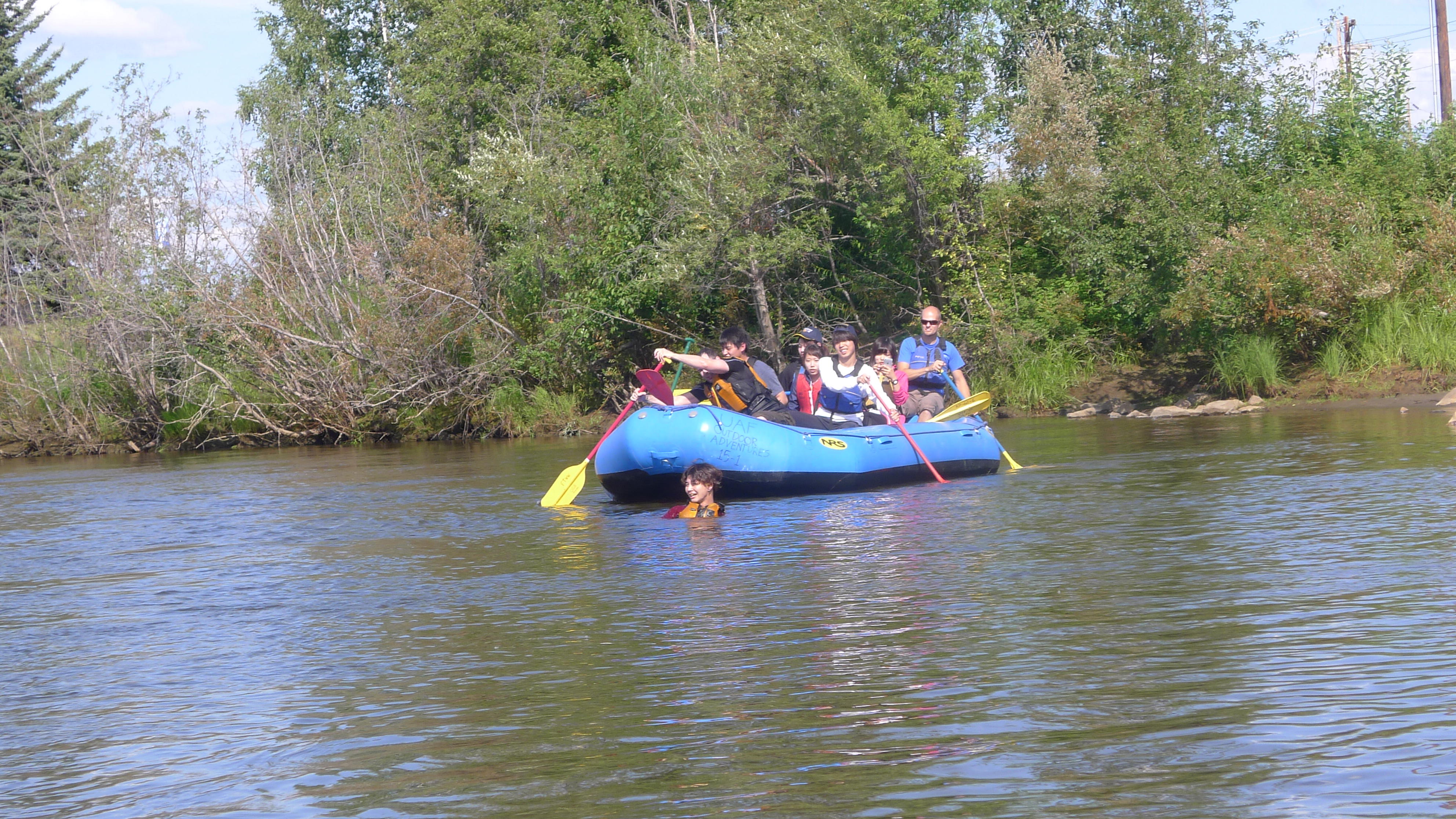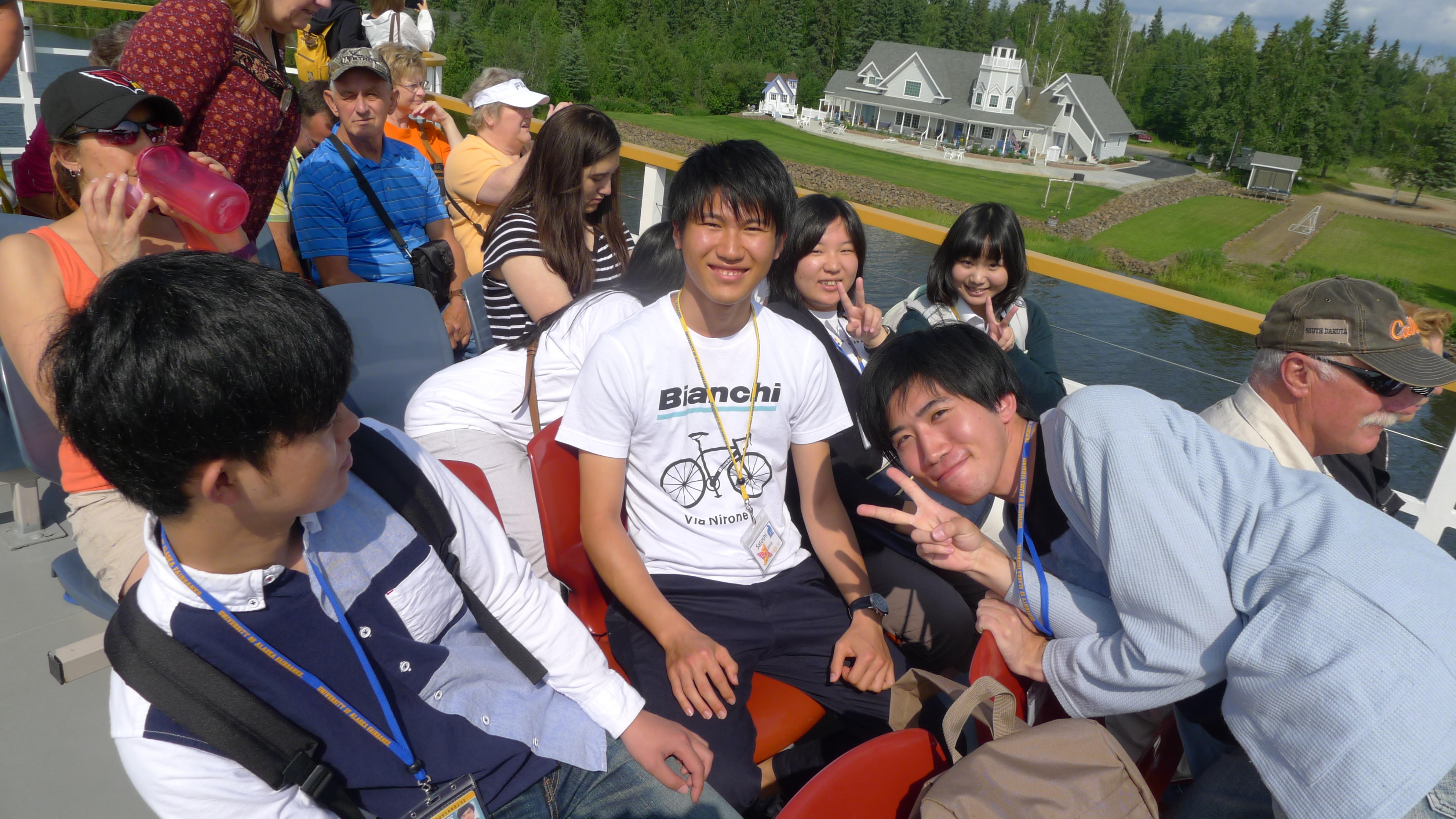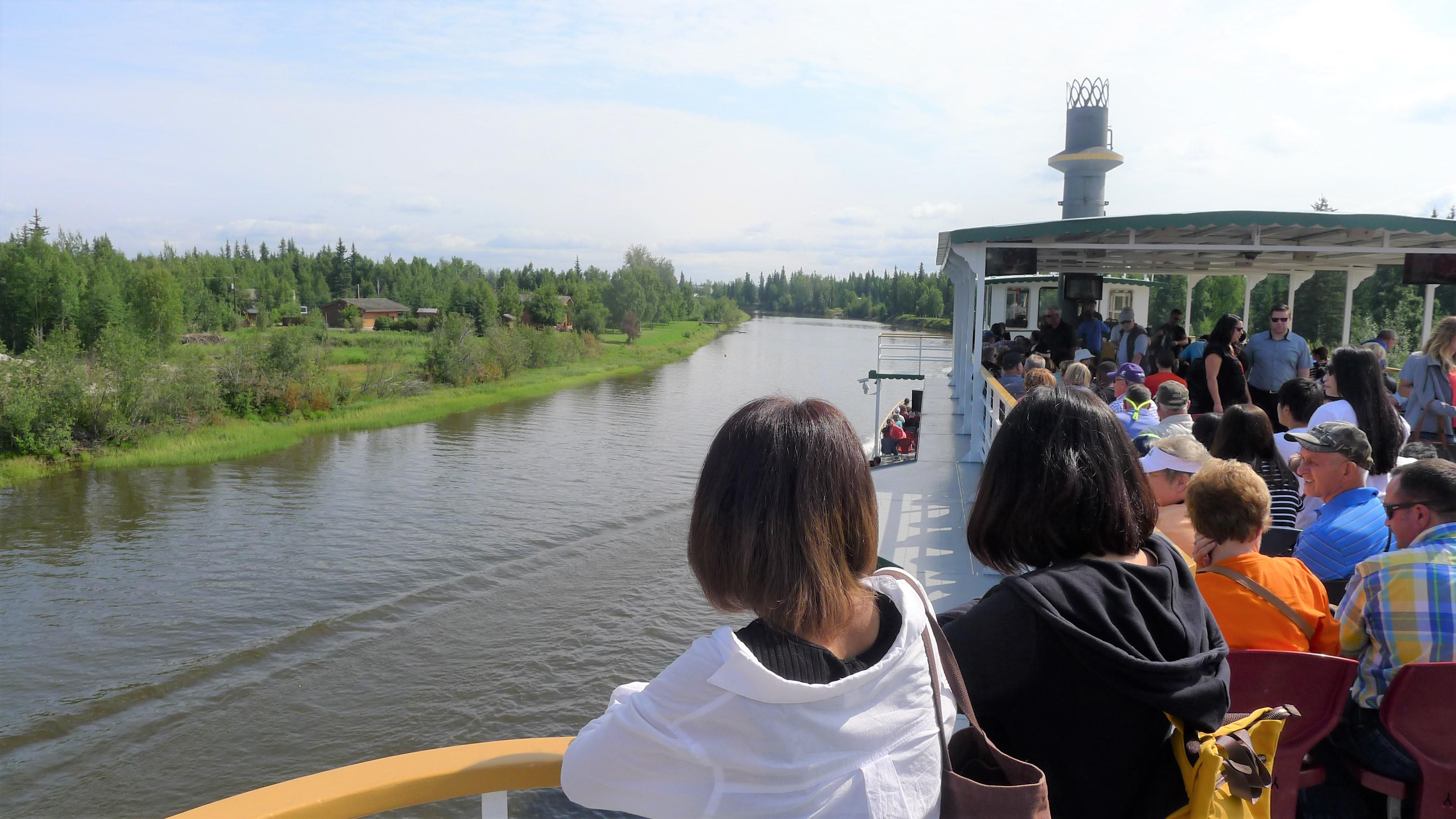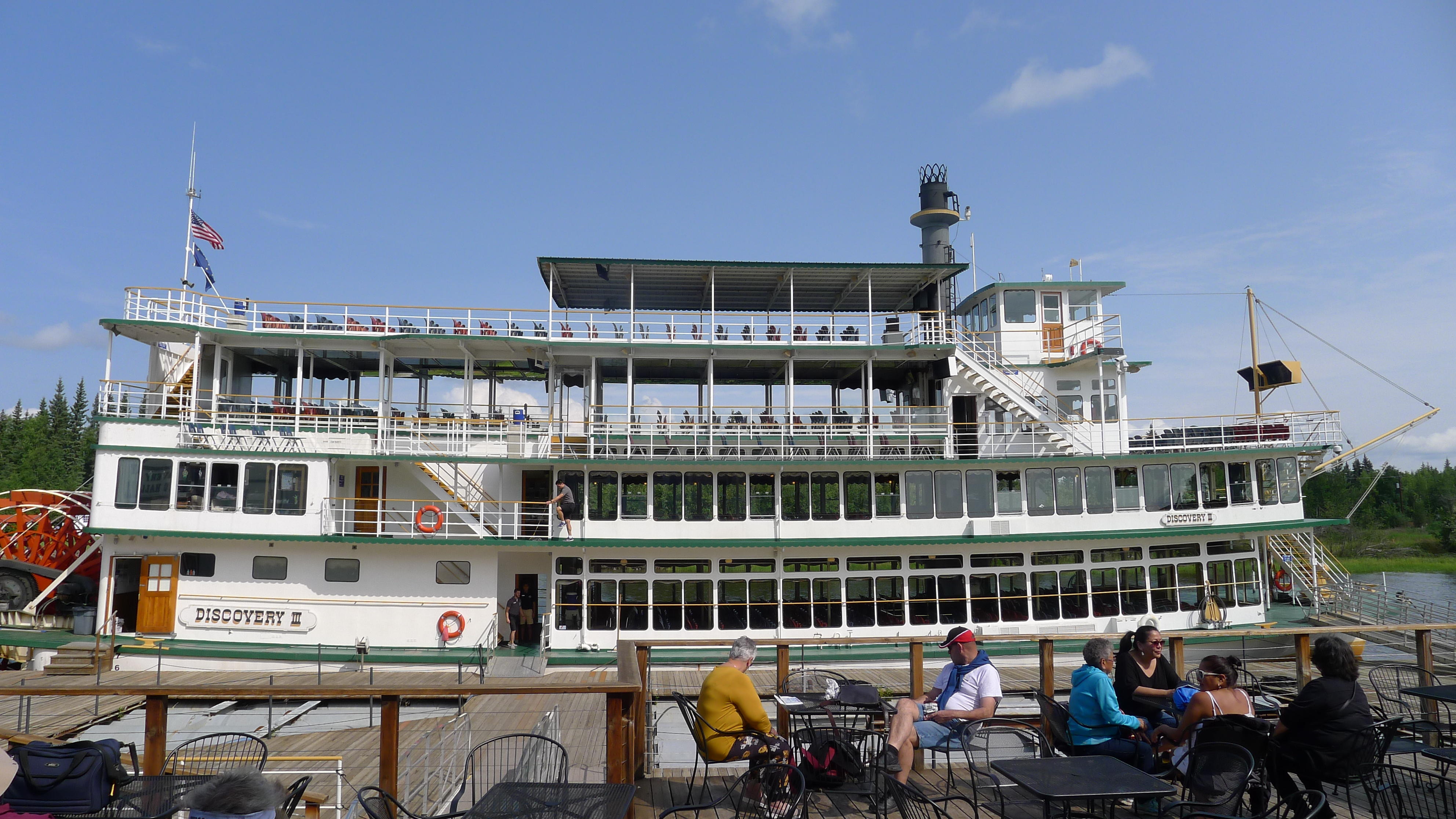 8日目の日曜日。前日のデナリ国立公園ツアーの疲れをとるため、午前中のスケジュールはなく、お昼から「Riverboat Discovery」に出かけました。これは、大きな遊覧船に乗って、アラスカの歴史や文化を学ぶツアーです。