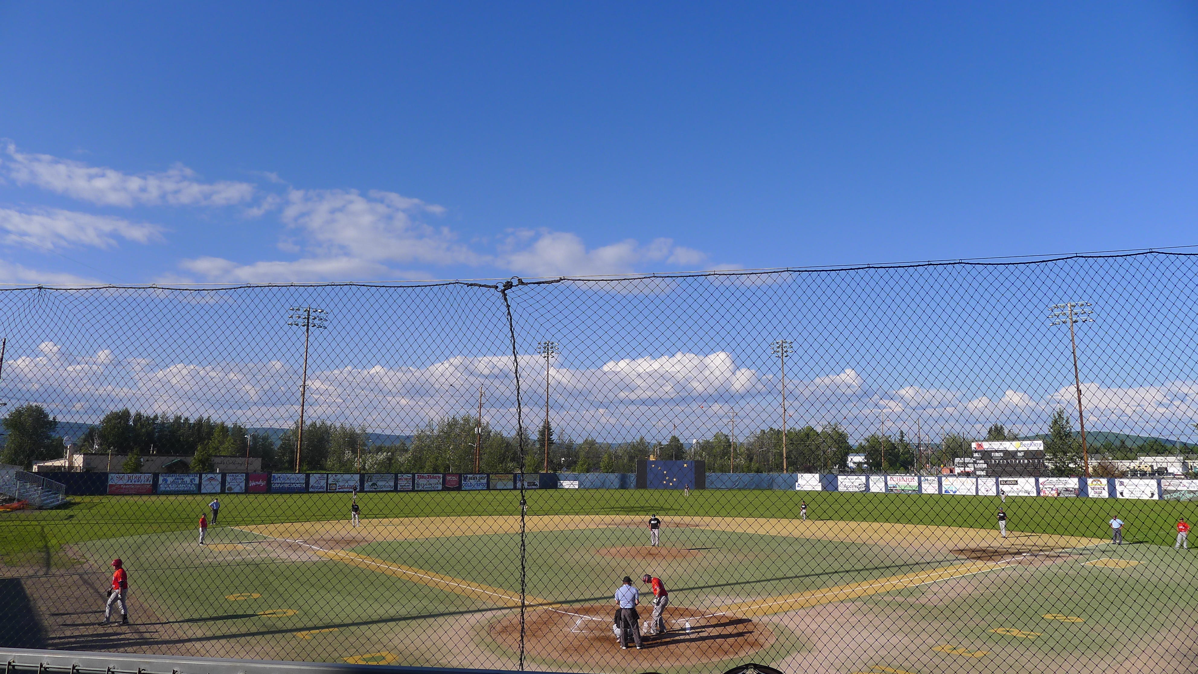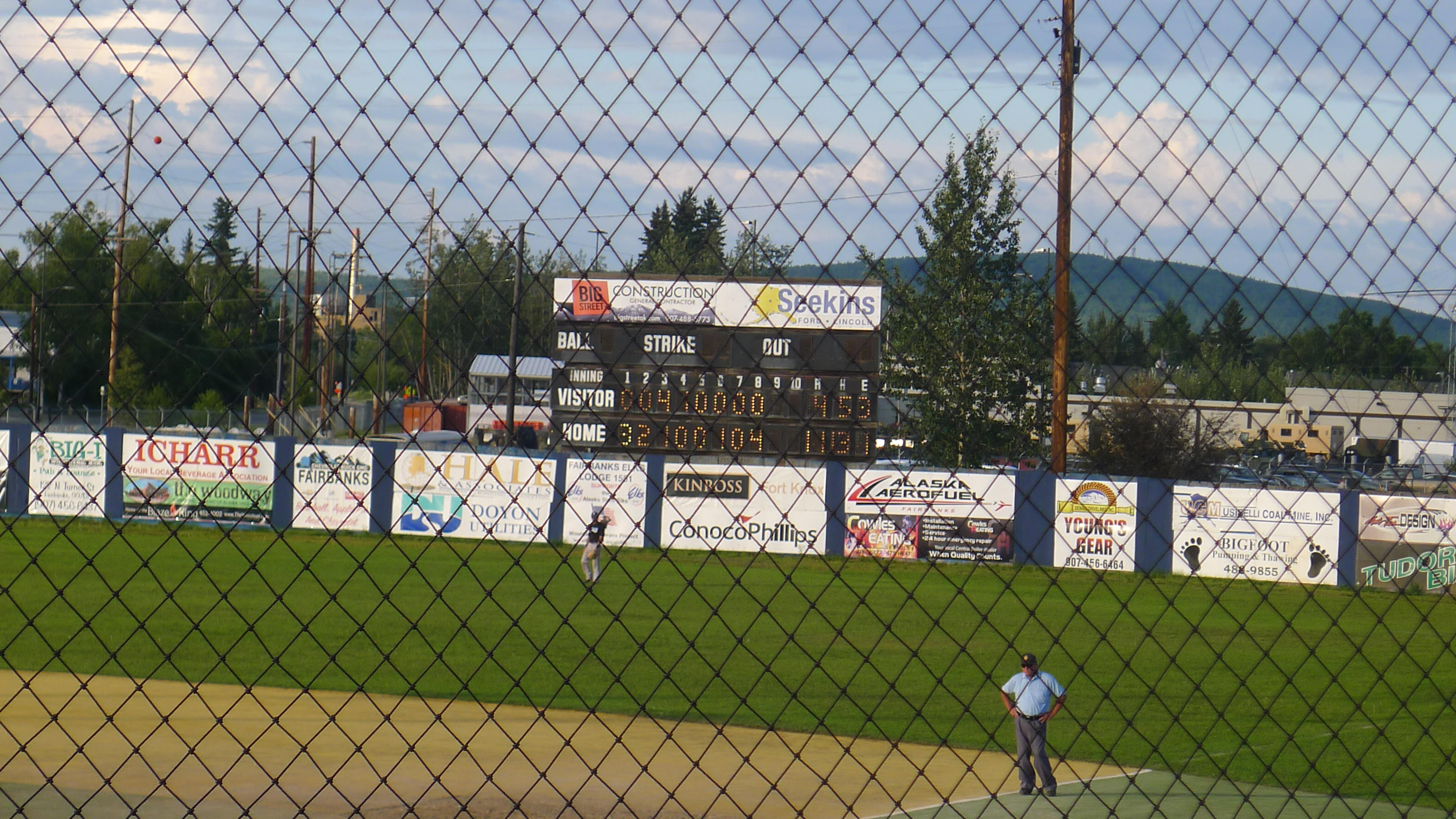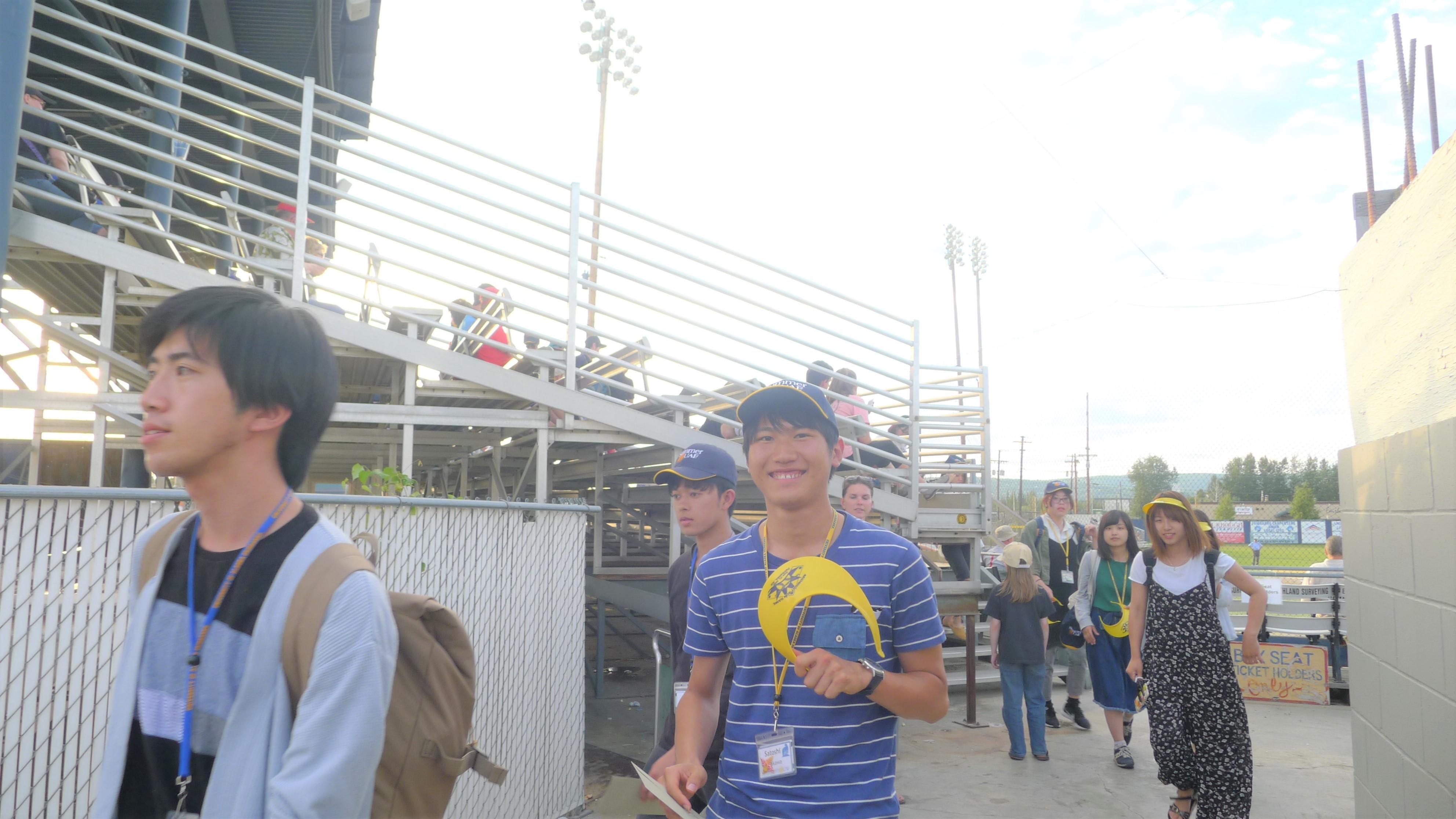 赤のユニホームを着た地元Alaska Goldpannersが優勢に試合を進めていきます。Goldpannersがファインプレーをしたり、ヒットを打ったり、得点を入れたりすると、観客席全体で拍手と歓声が沸き起こりました。アメリカらしい観戦スタイルに学生たちも興味津々で一緒に楽しんでいました。(M)