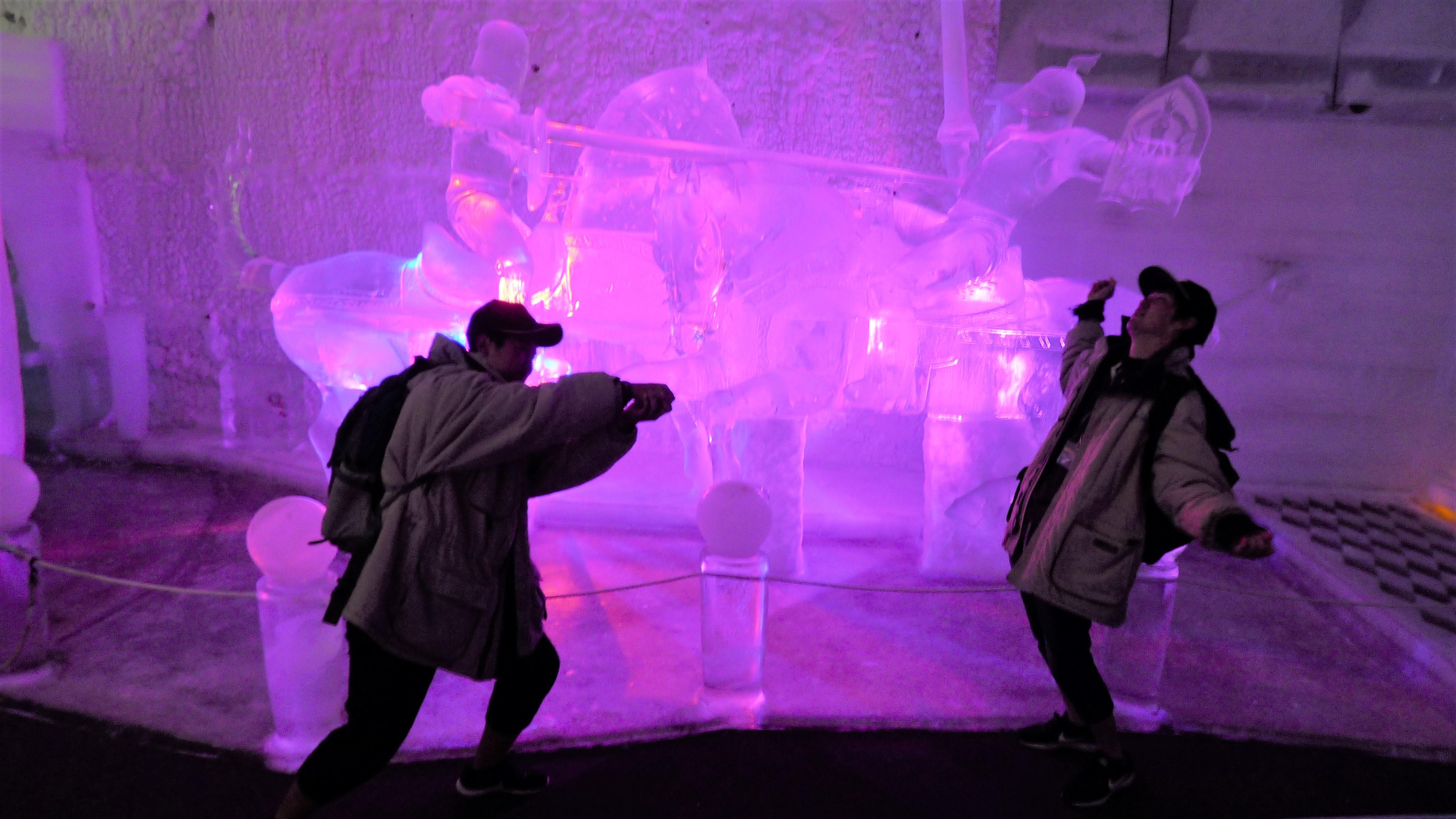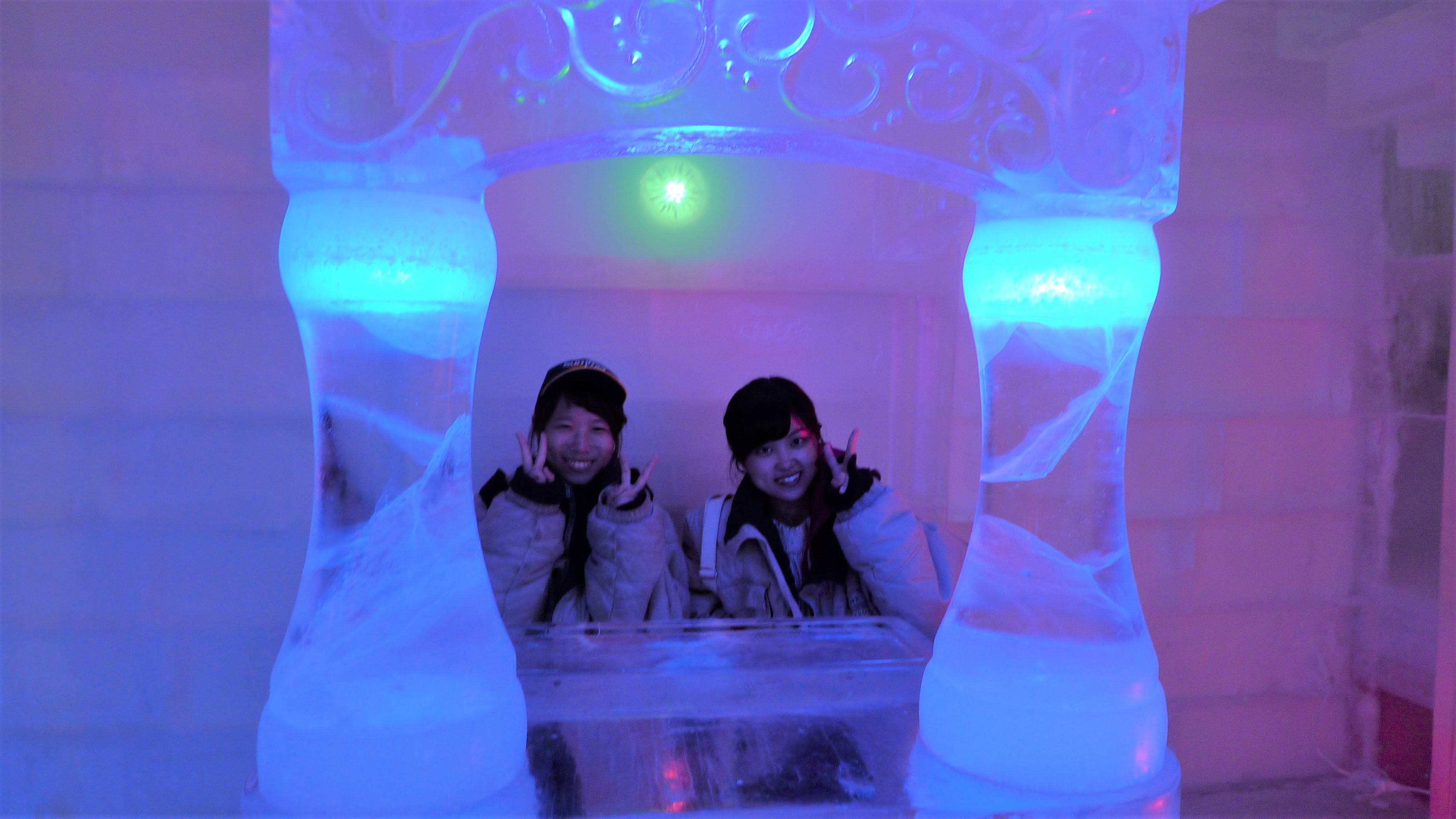 全員そろって出かけたのは、Aurora Ice Museum。氷点下の寒さをつい忘れ、幻想的な氷の世界にひたりました。