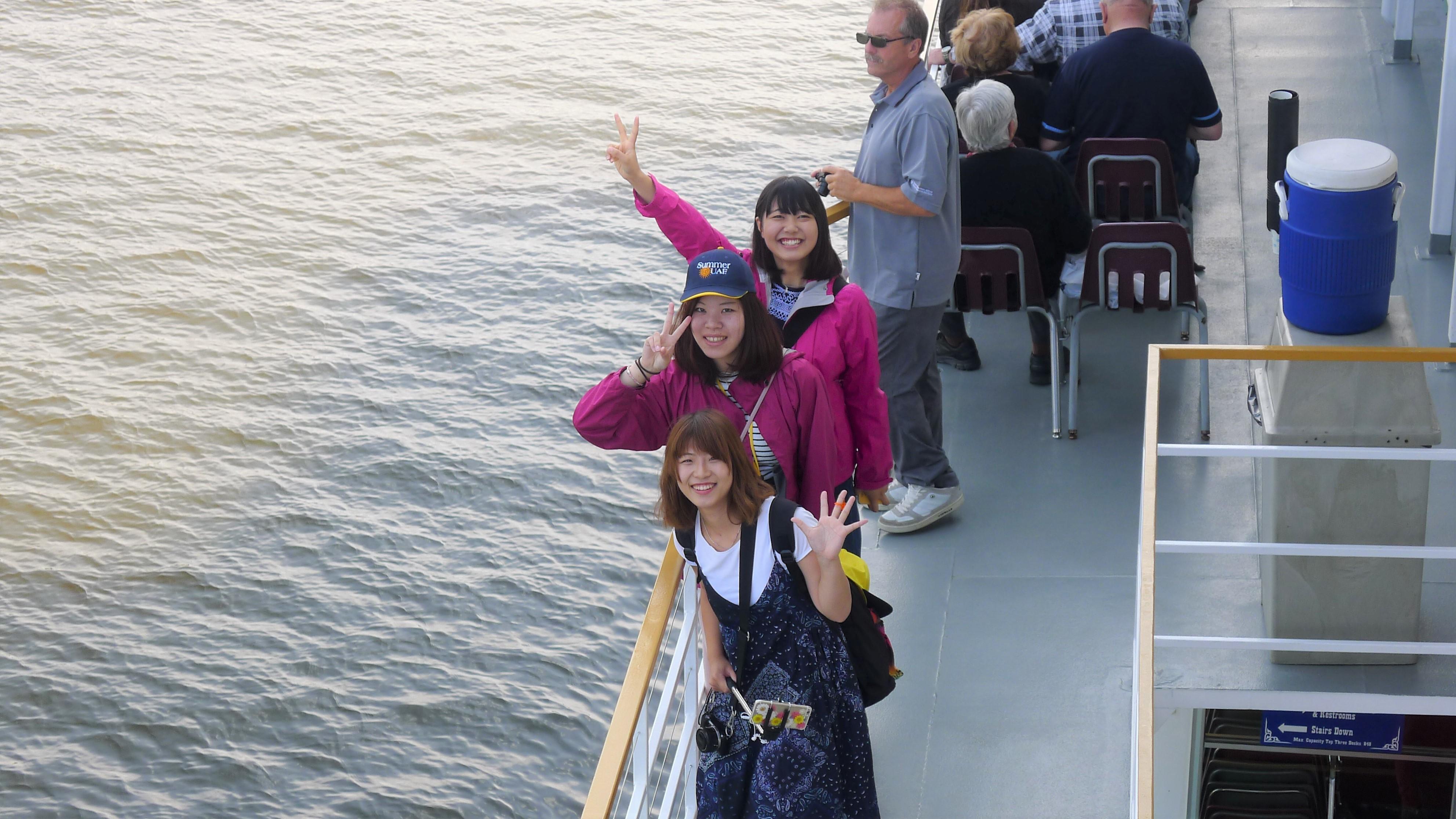遊覧船に乗る前に、まずは乗り場に併設されたレストランで昼食。素朴でありながら味わい深いアメリカ家庭料理に、おかわりをするグループも続出でした。